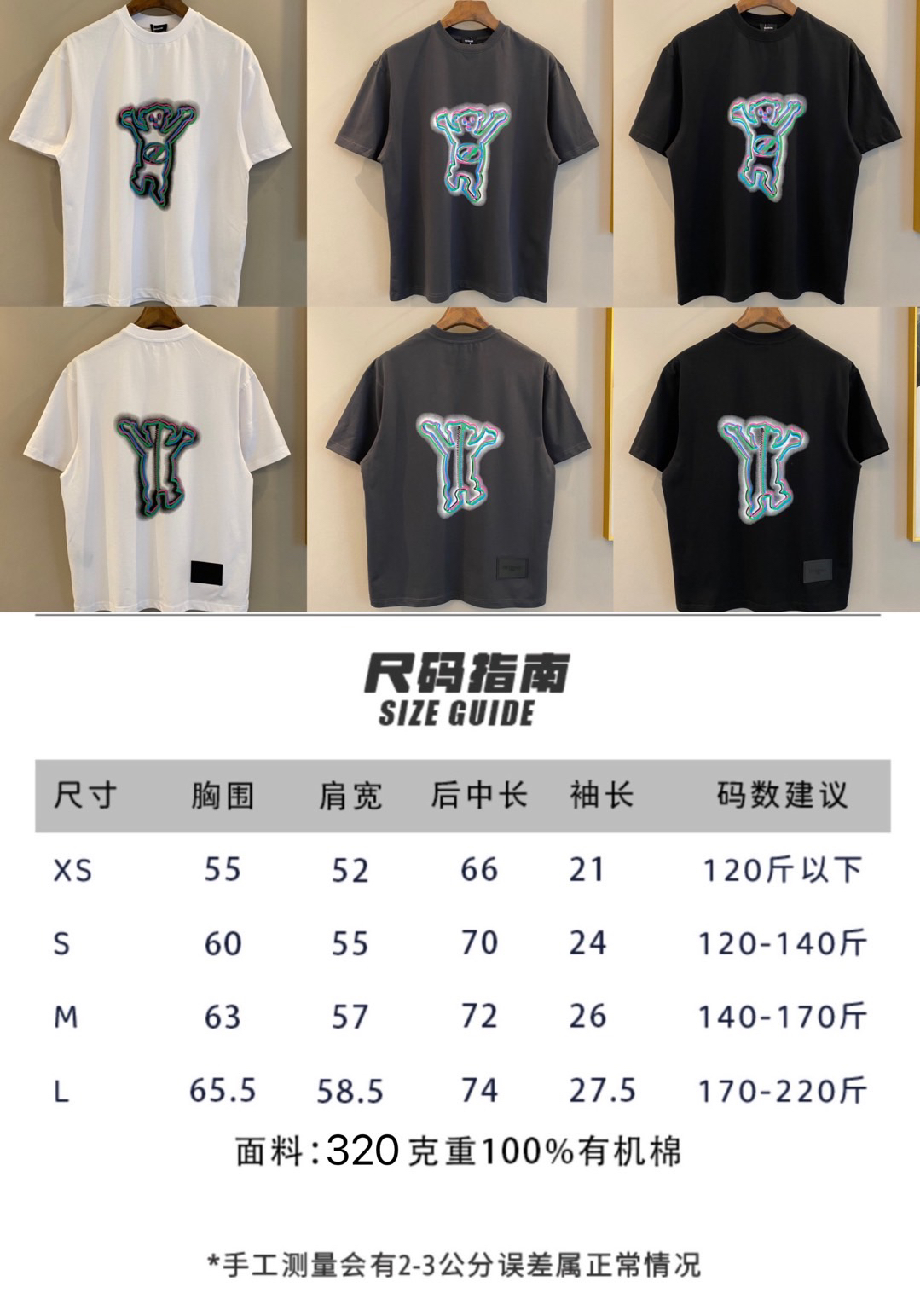We11done23春夏超大版型有机棉幻彩泰迪小熊印花T恤 168包邮🉐️