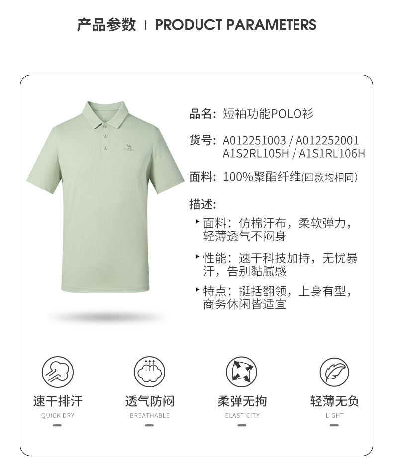 骆驼户外短袖POLO衫男款春夏新款翻领时尚休闲T恤速干上衣女 A012251003_A012252001