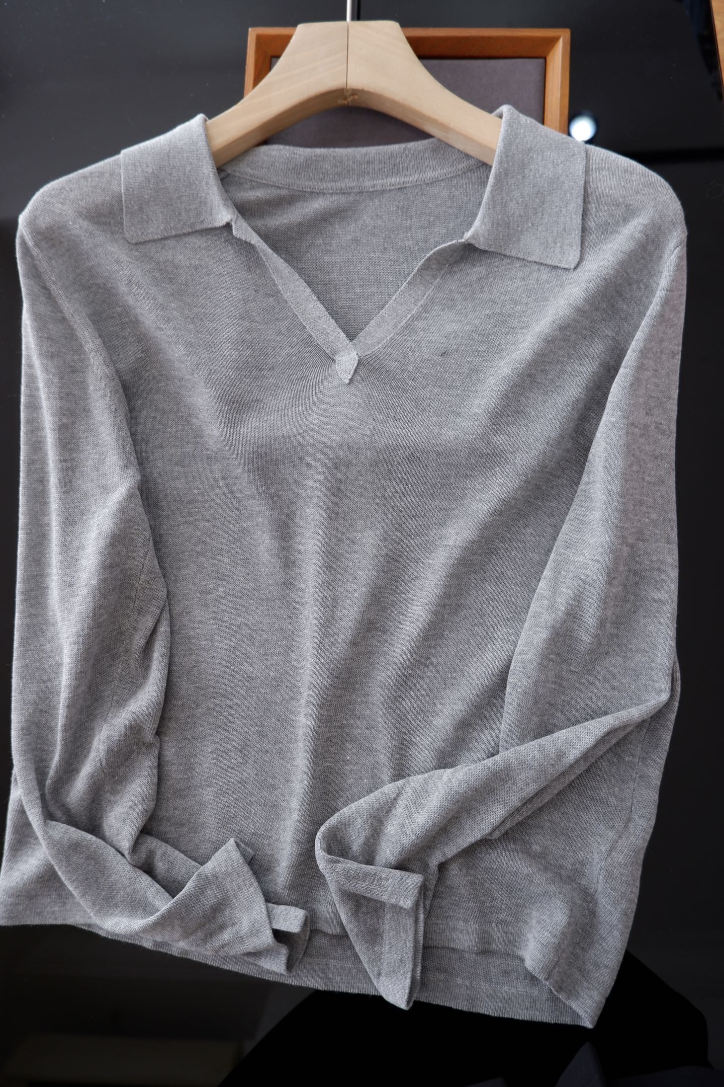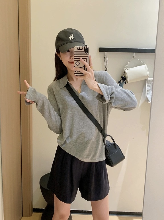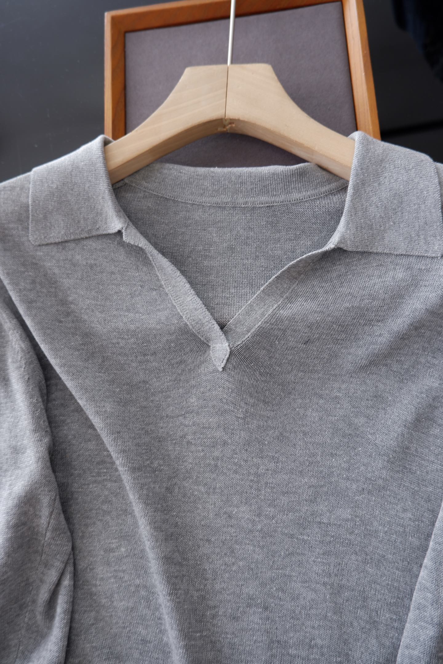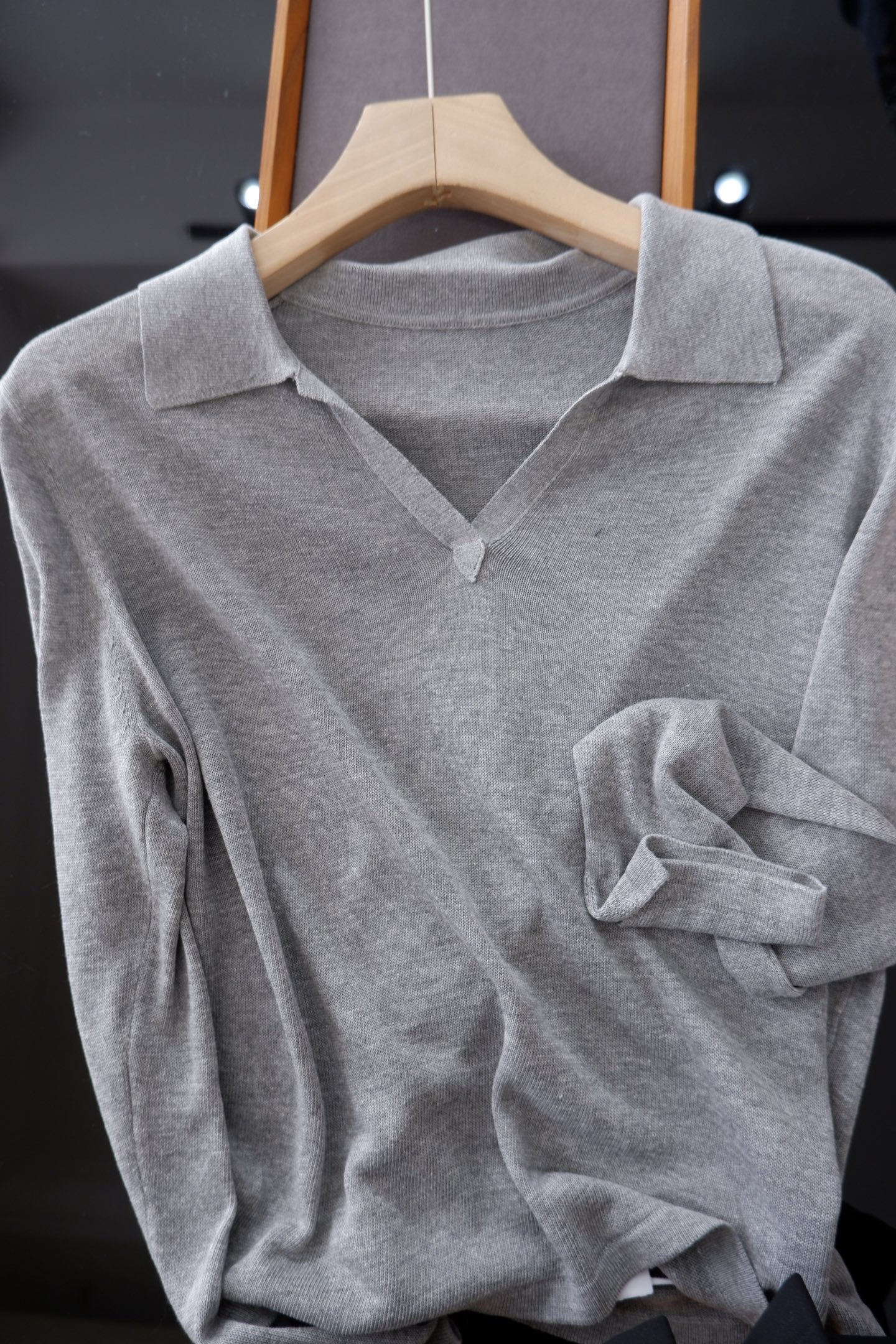 这件polo衫不抢眼,很耐看,早秋越穿越上头!这件灰灰的Polo长袖,上身真的高级感拉满~