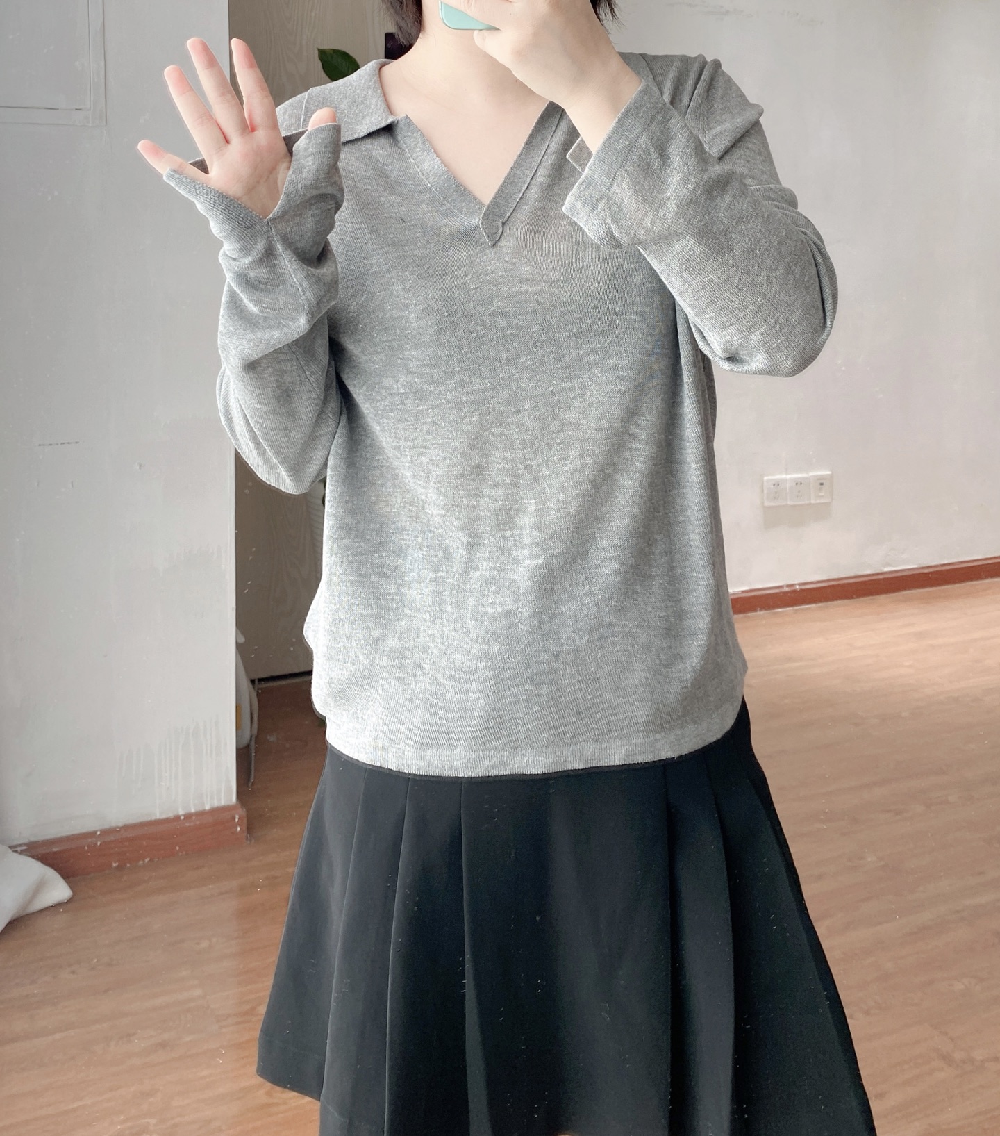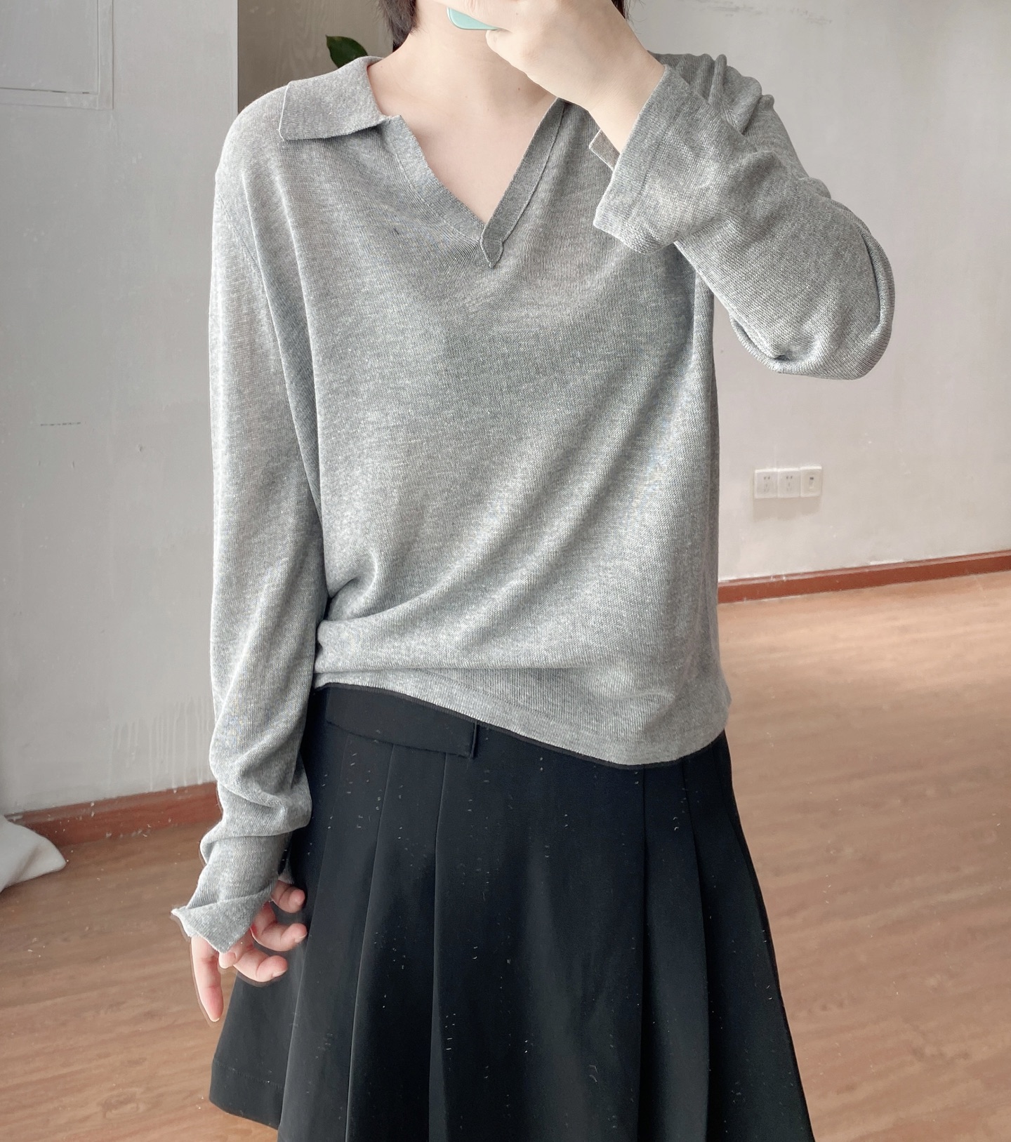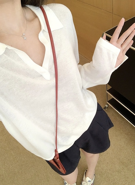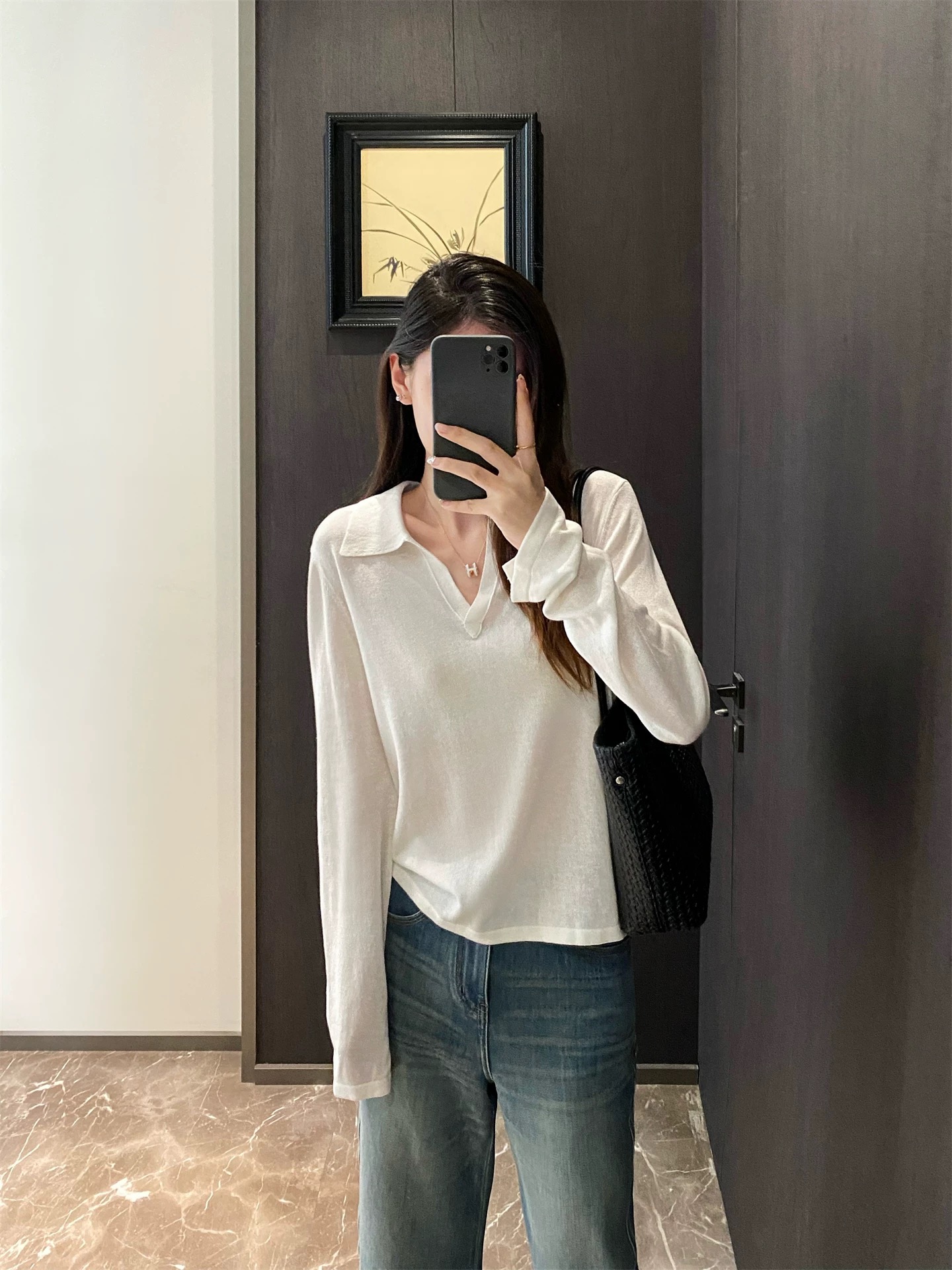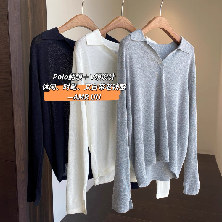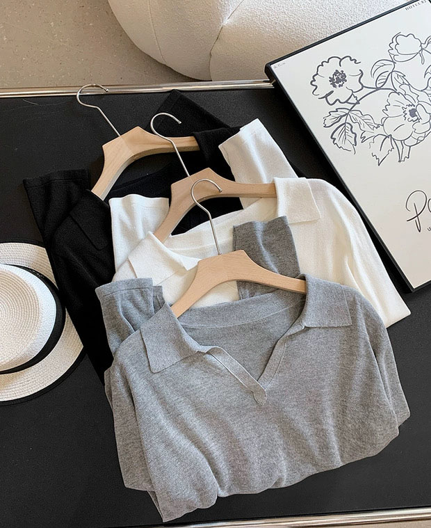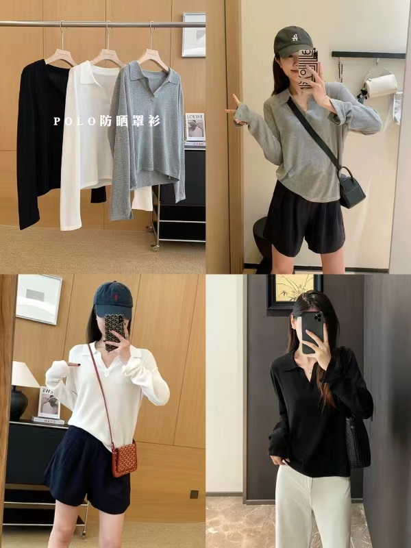 翻折Polo领+微V领口,视觉拉长脖颈,显脸小!