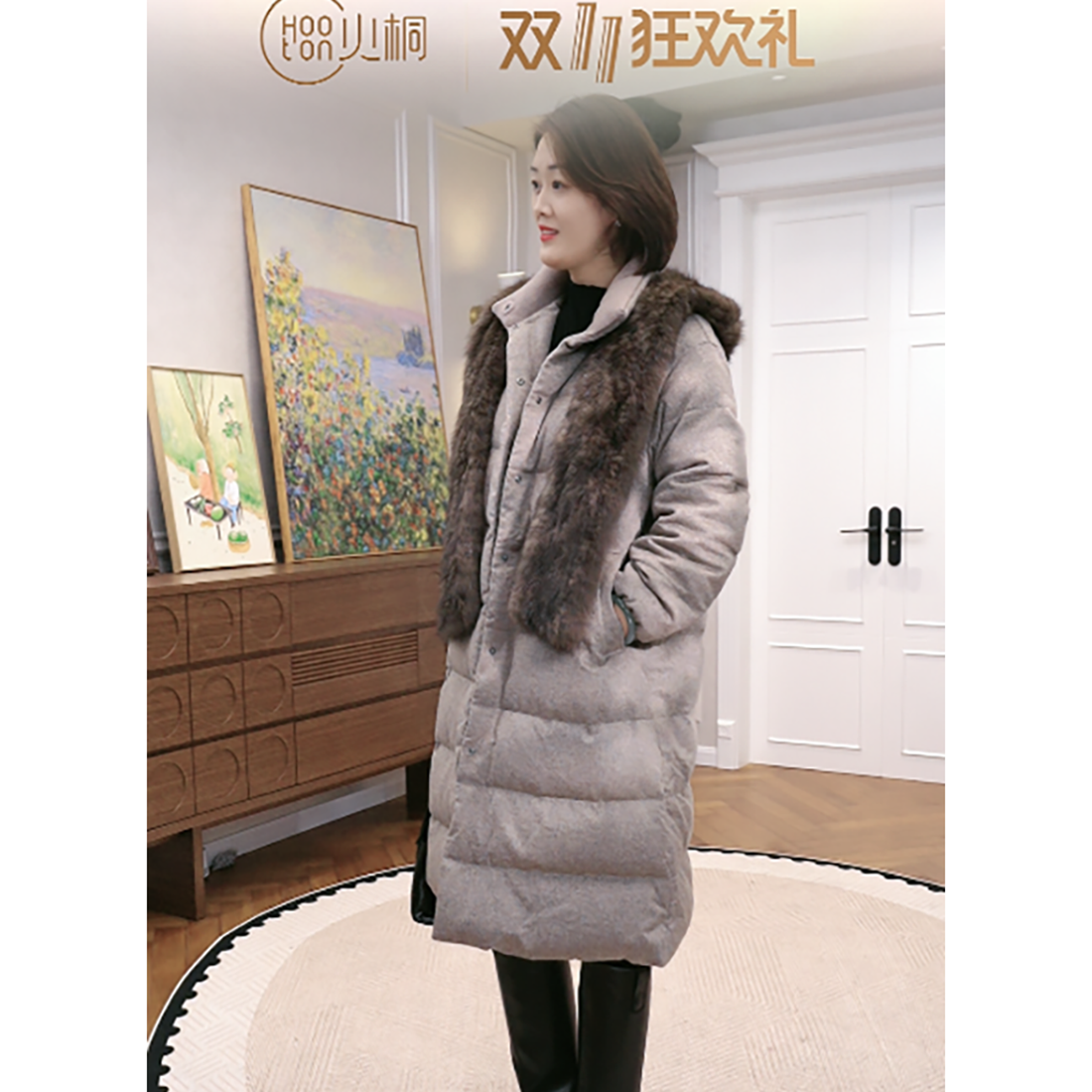 火桐hooton 铂金系列 Spuer120支原色黑绵羊初剪羊毛95白鹅绒服外套