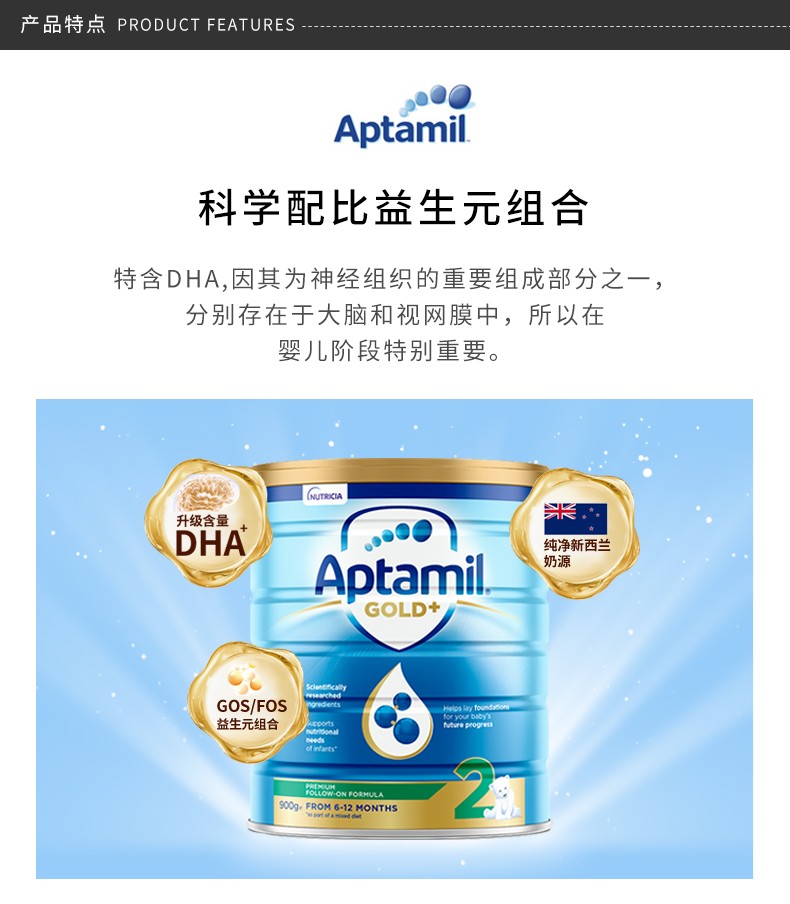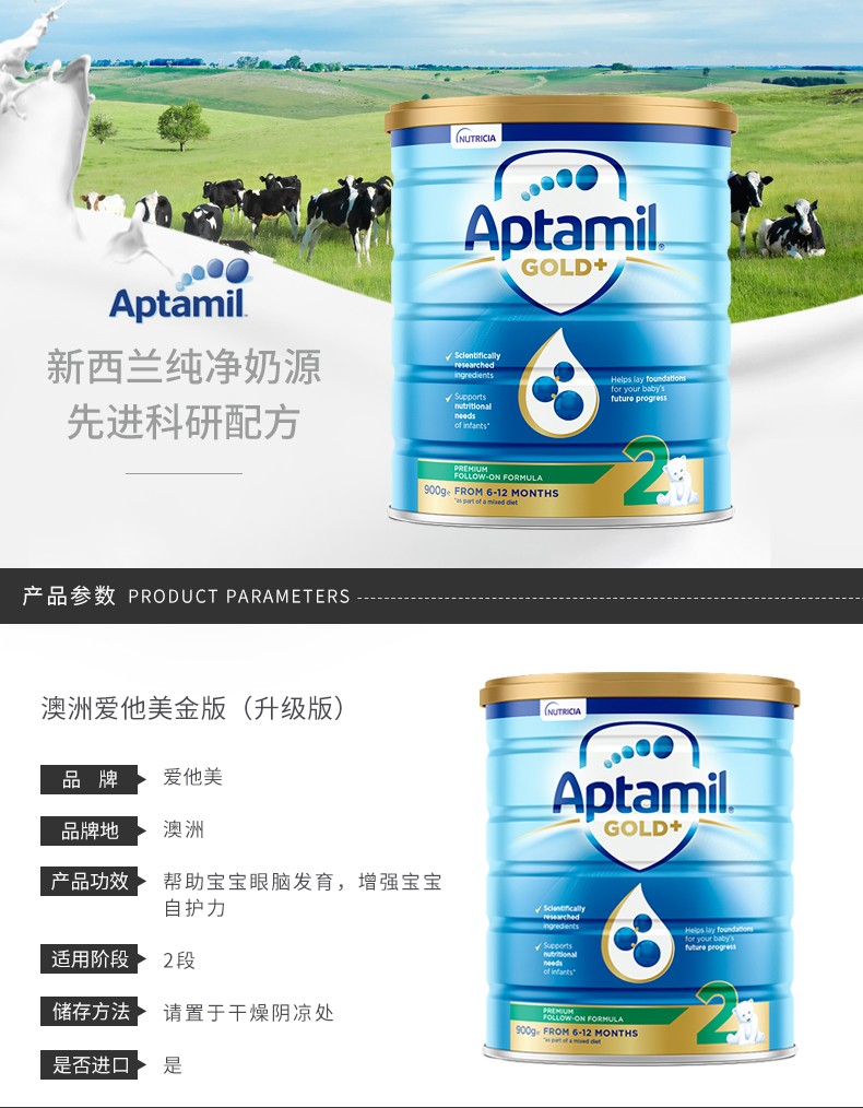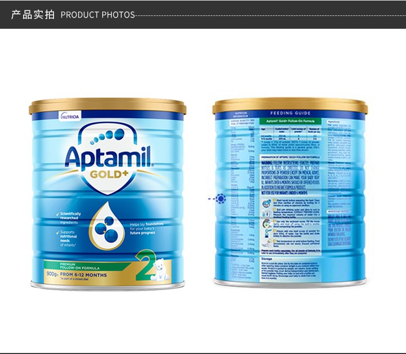 爱他美 金装加强奶粉2段 900克 两罐装 澳洲