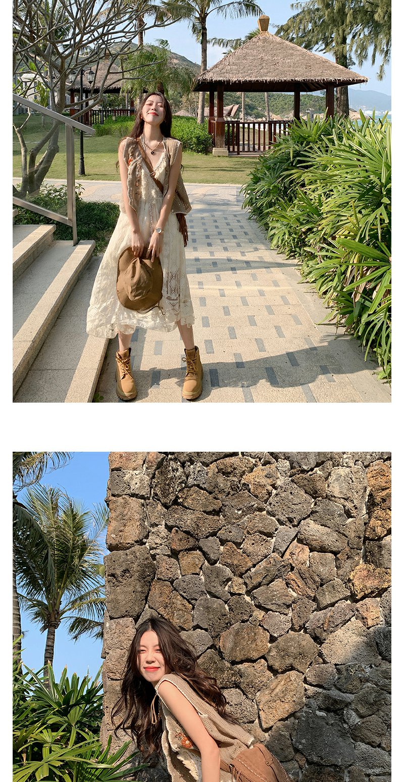<曾小咸推荐> 法式初恋长裙女夏季新款海边度假风马甲吊带连衣裙两件套