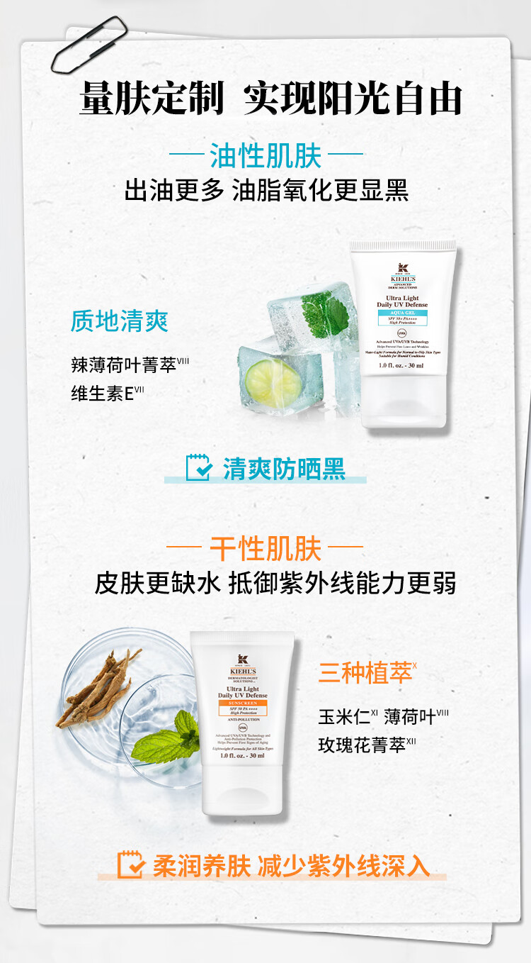 科颜氏 水感/柔润防晒隔离乳 小冰盾小橘盾 SPF50 PA++++