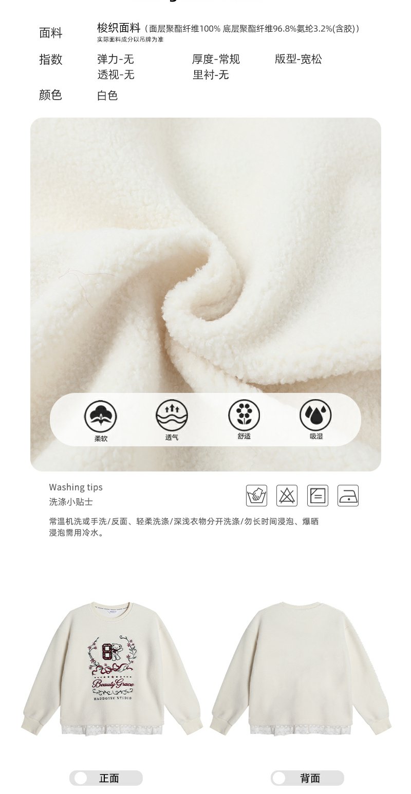 <曾小咸推荐> 现货秒杀!微信超特价!刺绣羊羔毛无帽圆领卫衣 日常189.99 立减90 秒杀99.99!