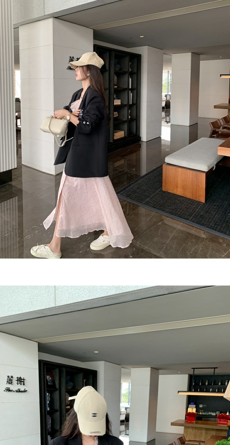 <曾小咸推荐>浅杏色露肩挂脖连衣裙【预售7-15天发货】