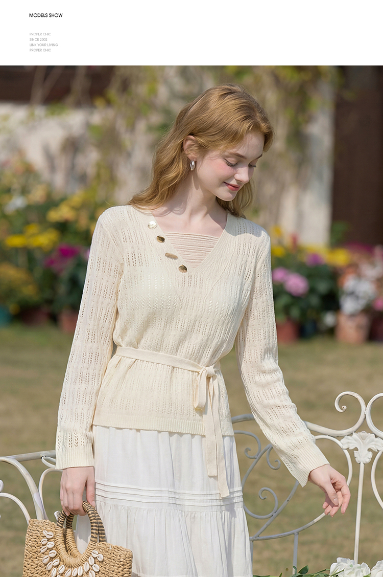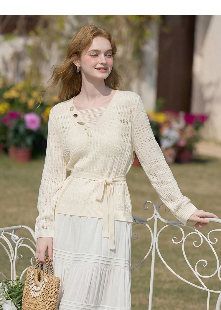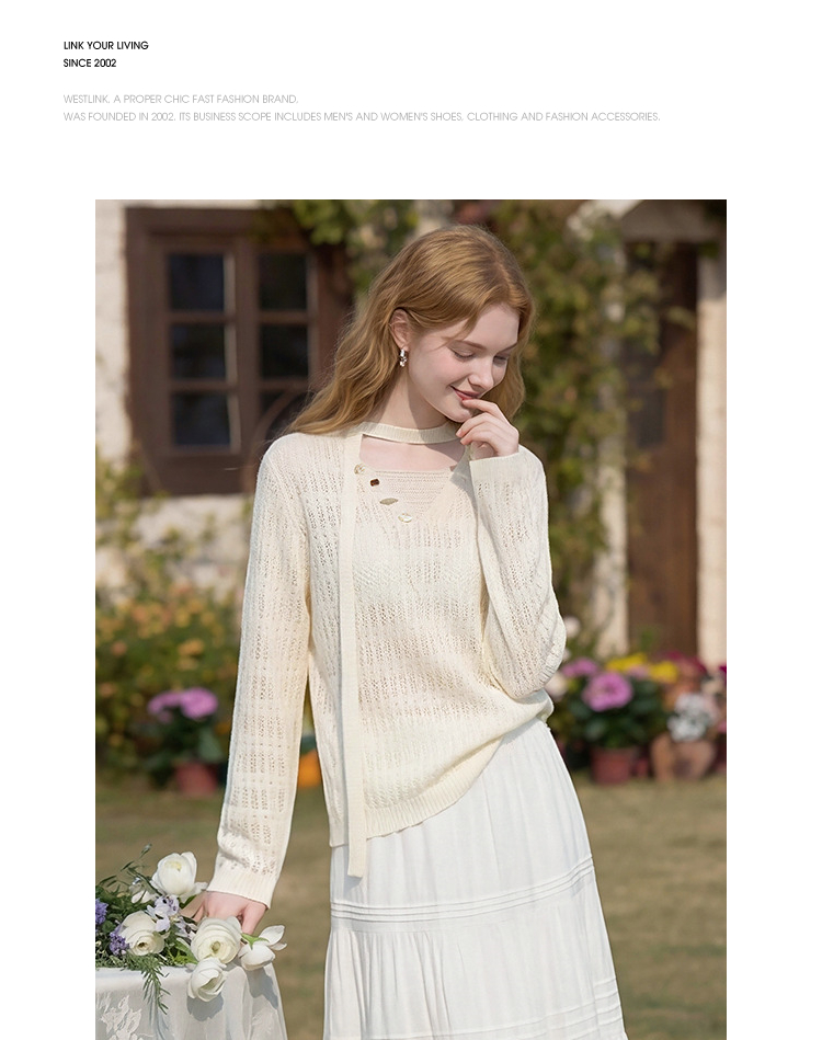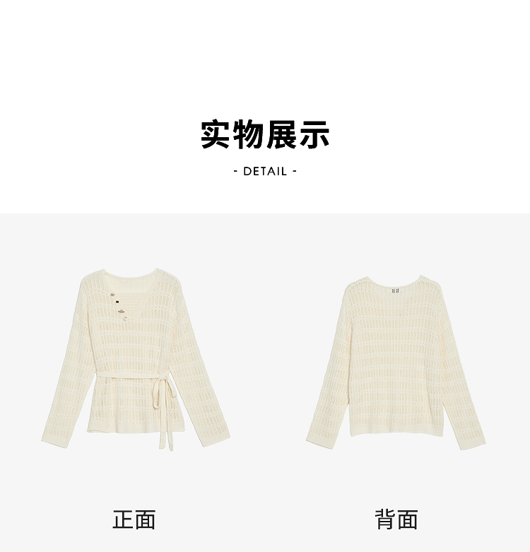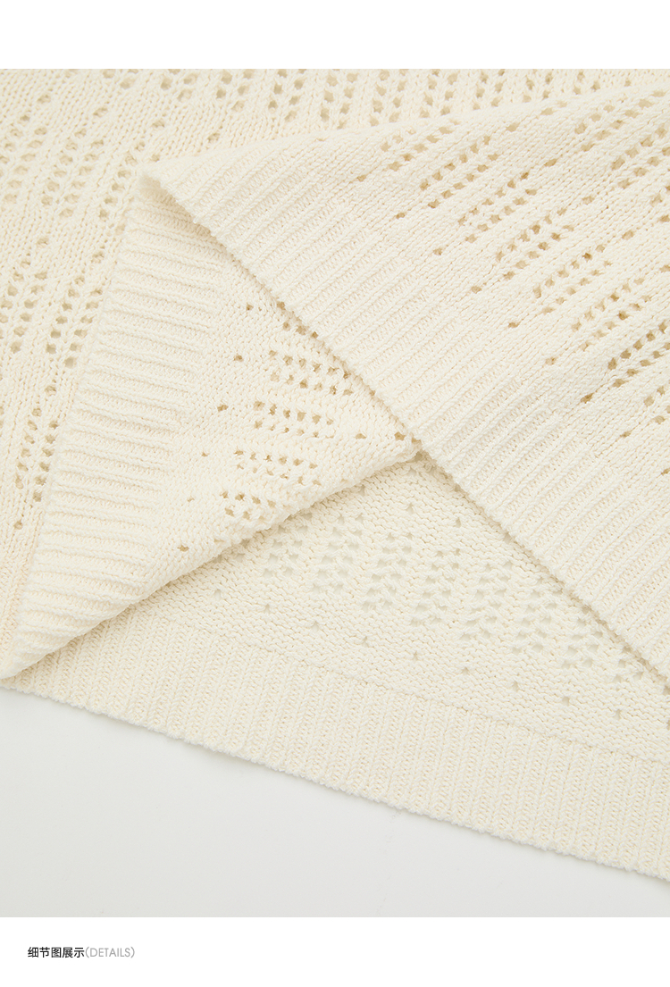 西遇法式慵懒镂空针织衫2026春薄款贝壳装饰休闲透气罩衫上衣H0060243