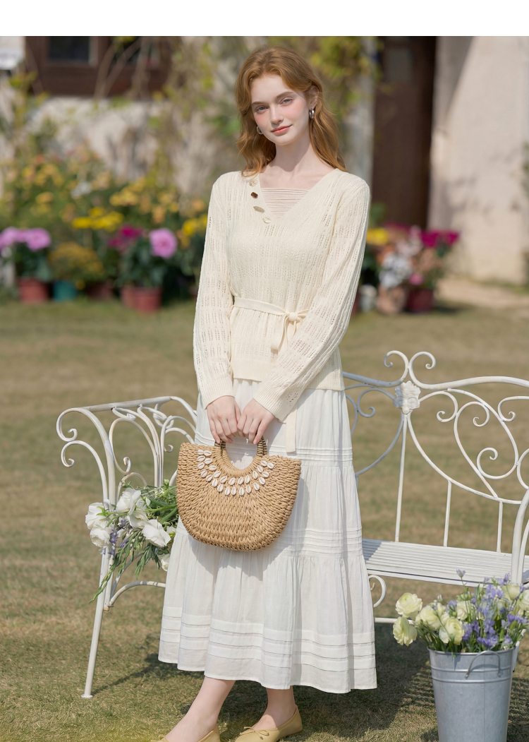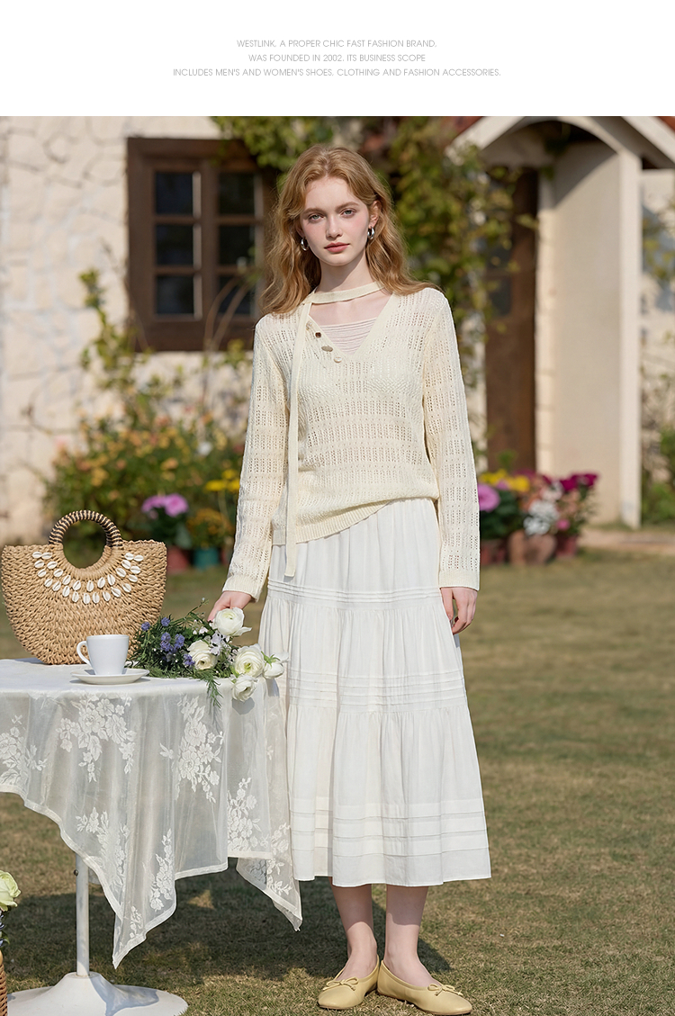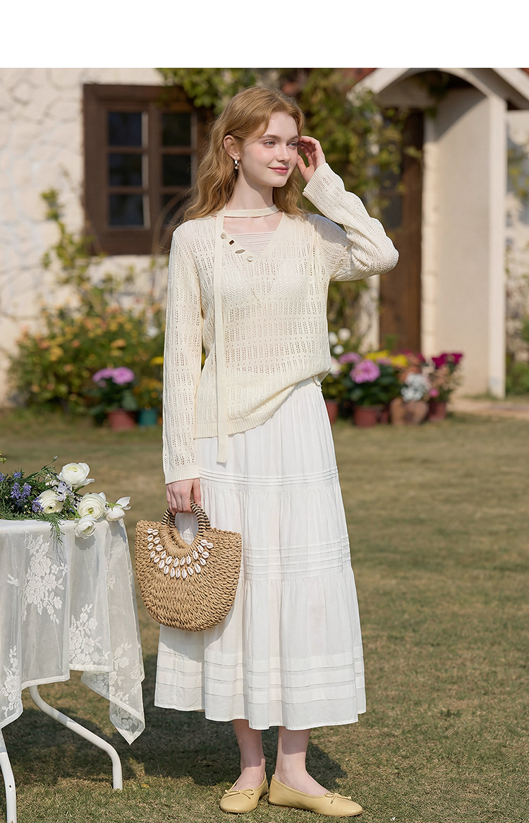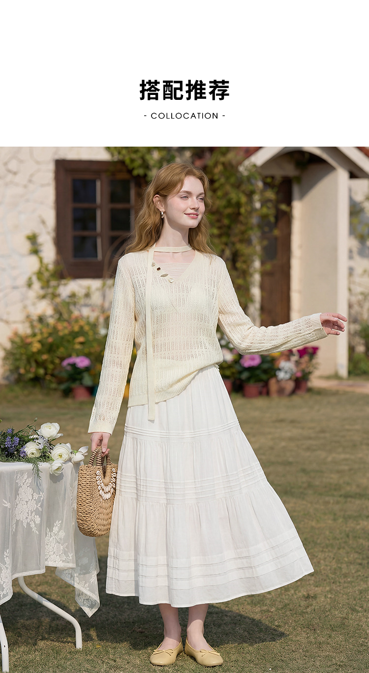 西遇法式慵懒镂空针织衫2026春薄款贝壳装饰休闲透气罩衫上衣H0060243