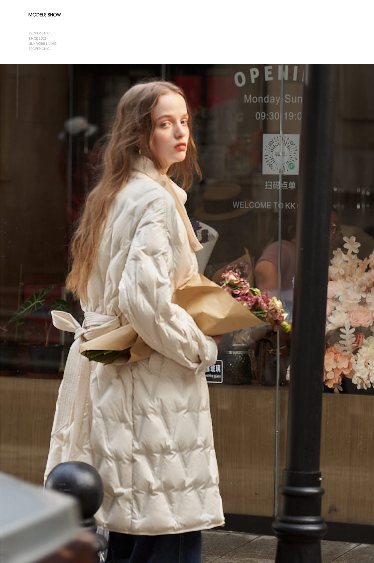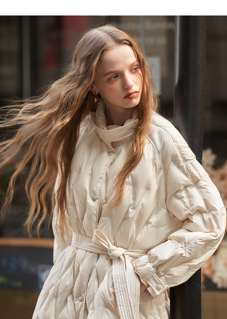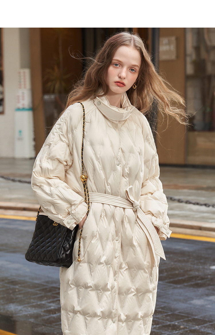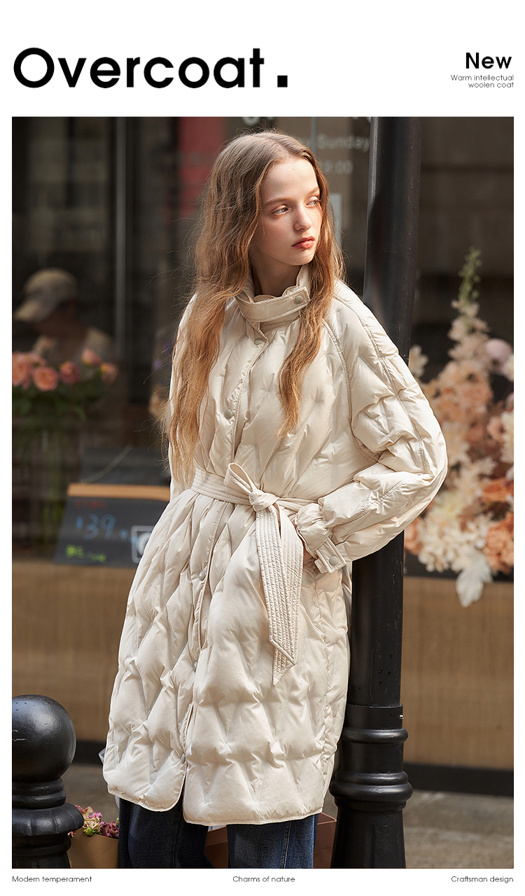 西遇轻薄菱形格羽绒服女秋冬新款极简气质中长款保暖外套V2231642