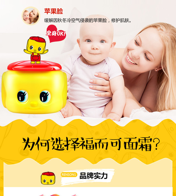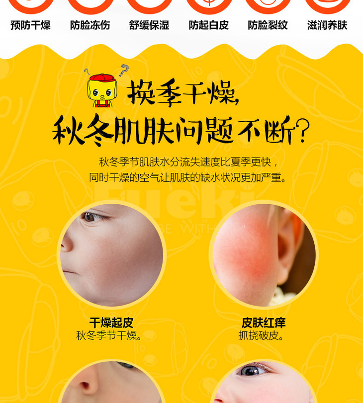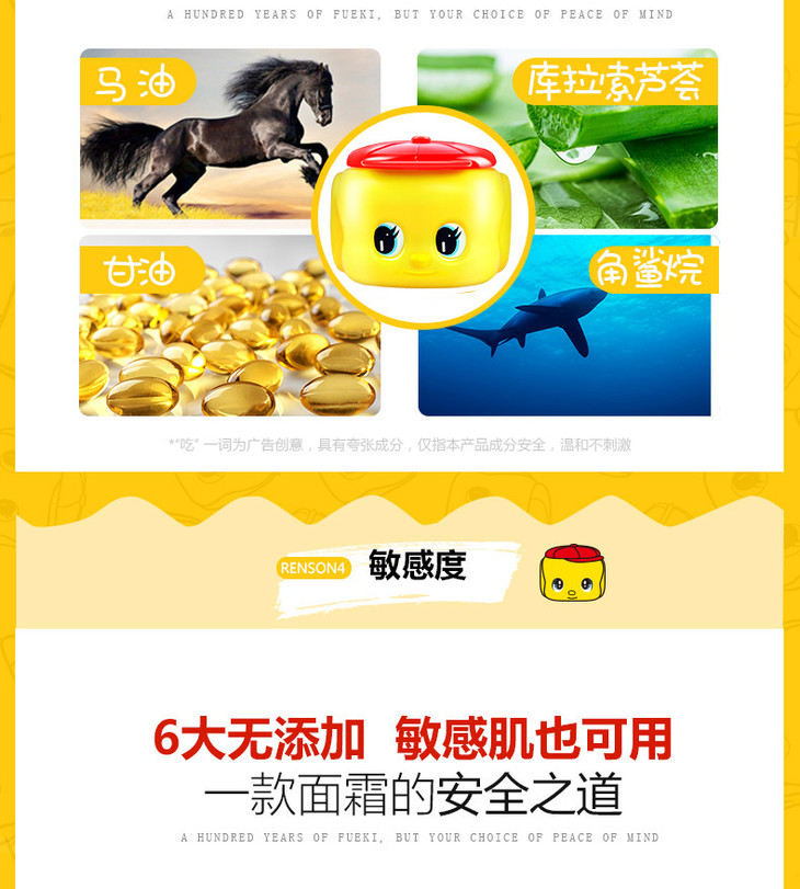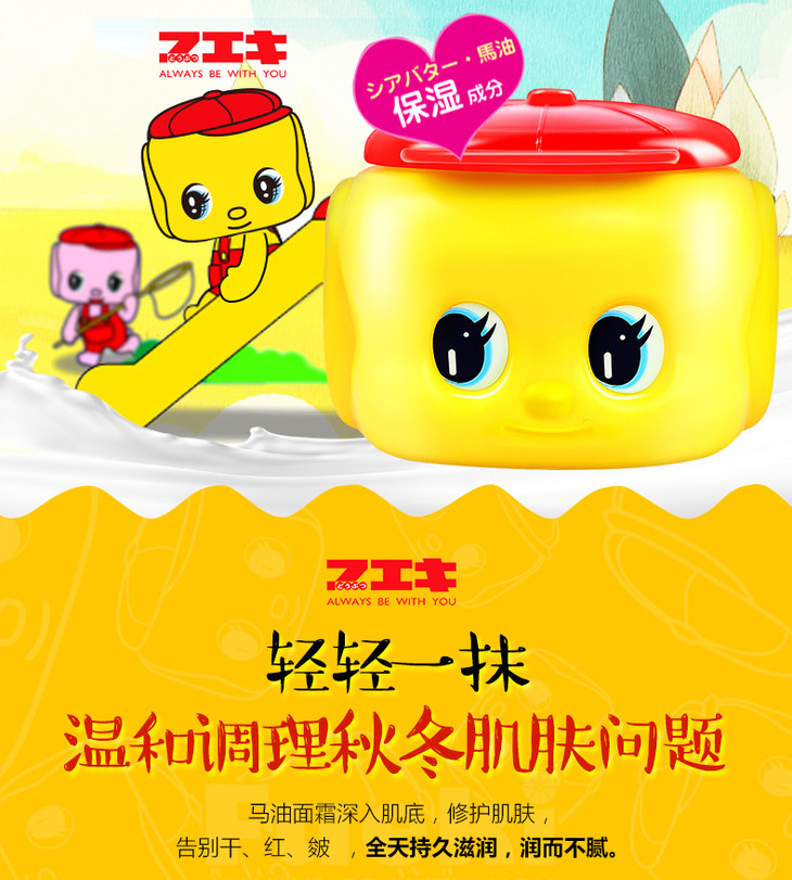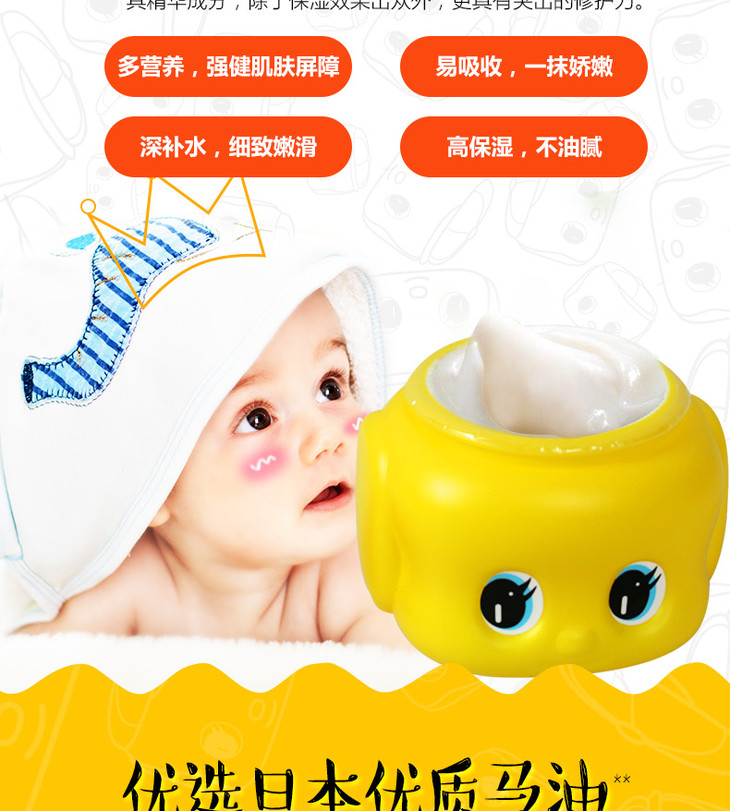日本Fueki/小黄鸭面霜婴儿宝宝儿童马油润肤霜保湿乳全身可用50g 库洛米限定