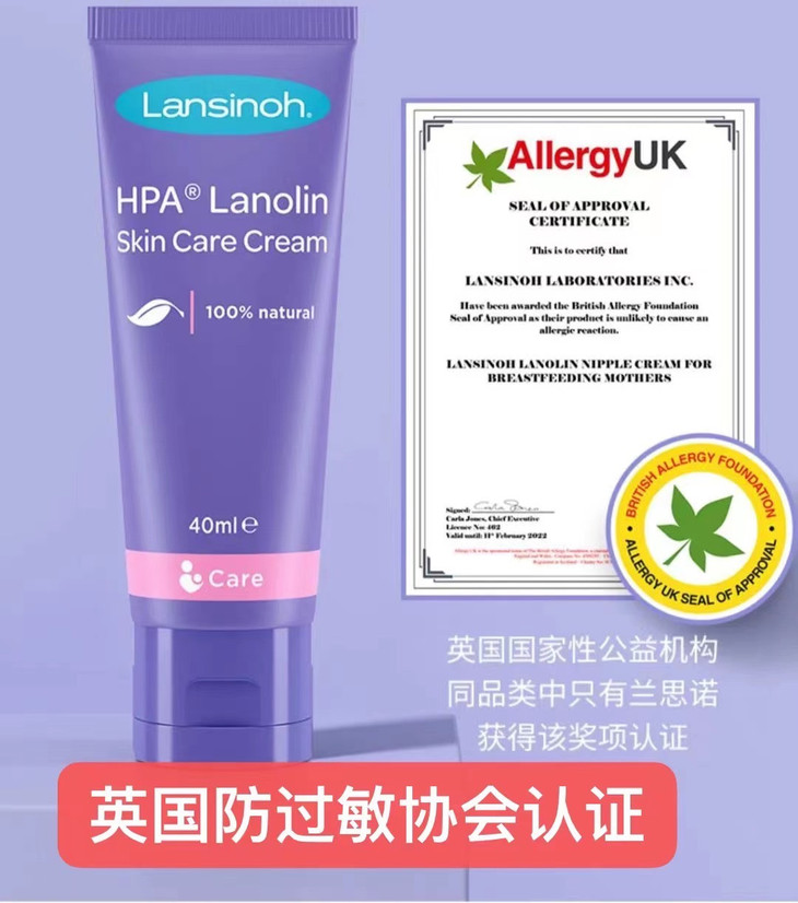 ✅Lansinoh兰思诺是唯一获得英国防过敏基金会正式认可的羊毛脂产品
