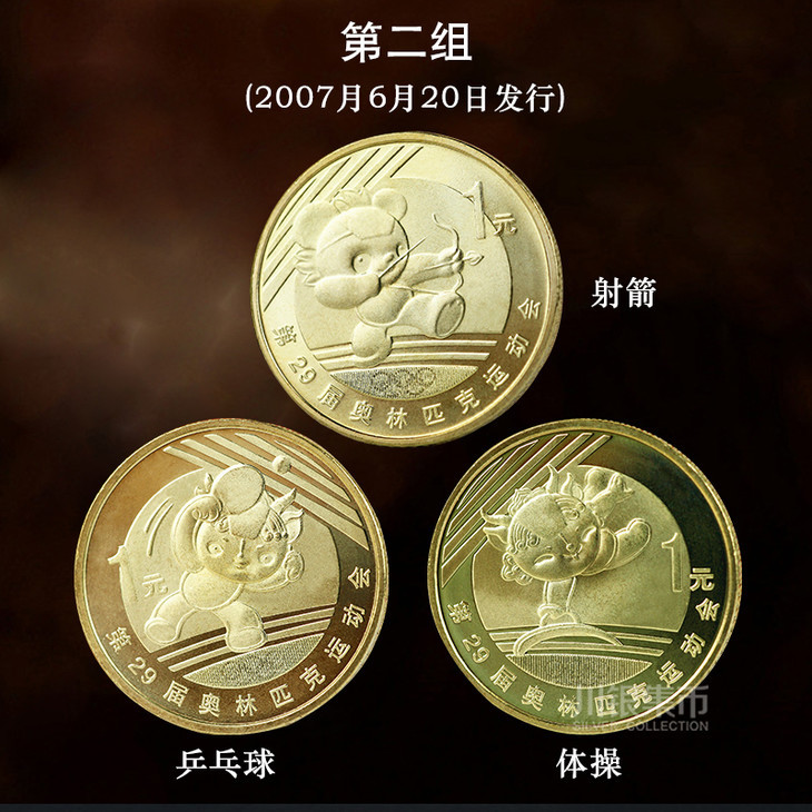 8枚规格:直径25mm,发行量1000万枚,面额1元,发行单位:中国人民银行。