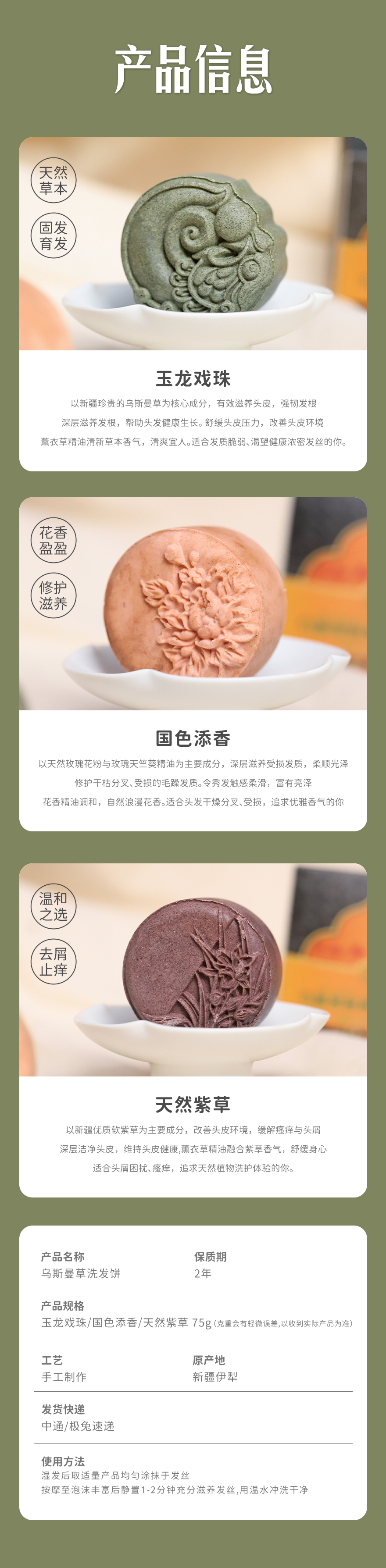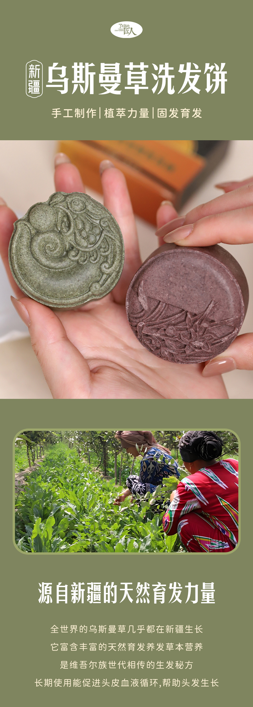 新疆乌斯曼草手工洗发饼 无硅油无添加 氨基酸表活温和清洁 洗护一体