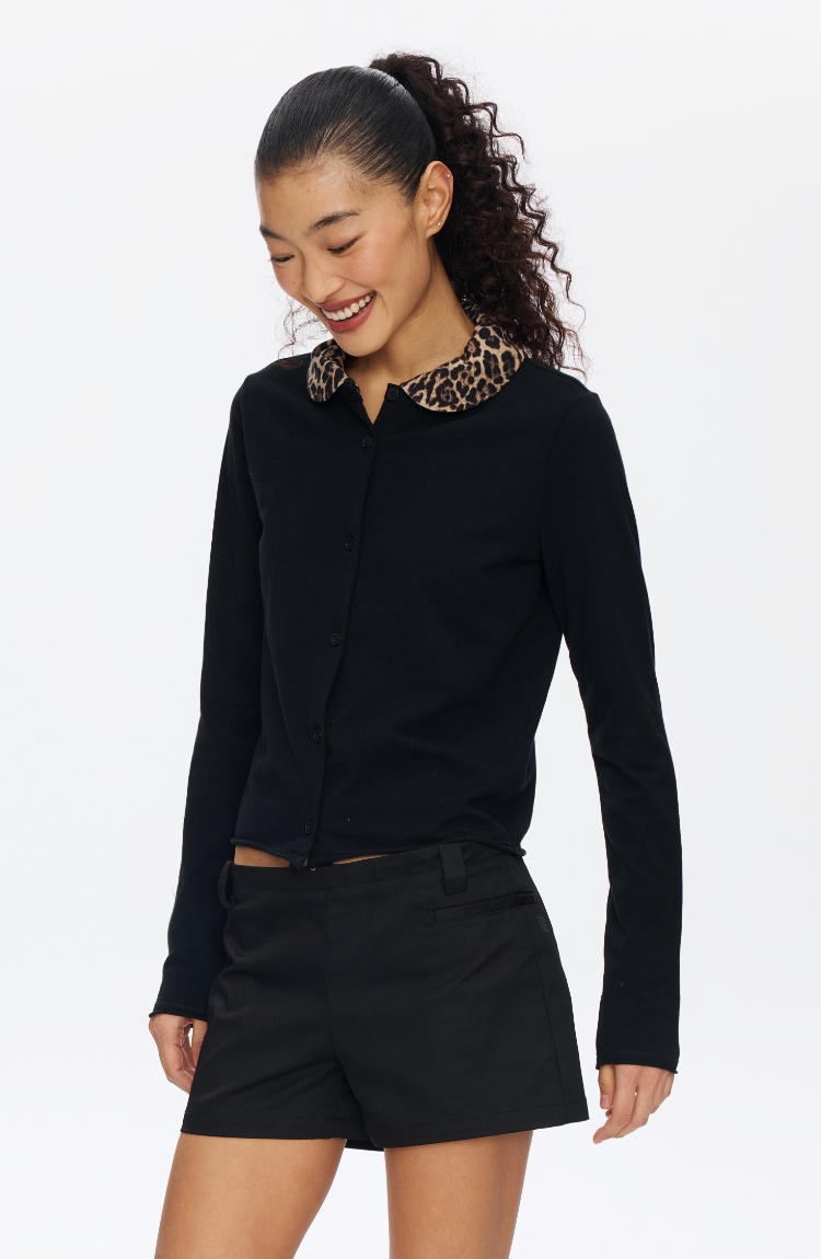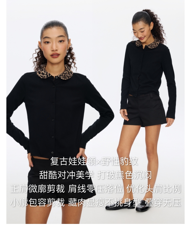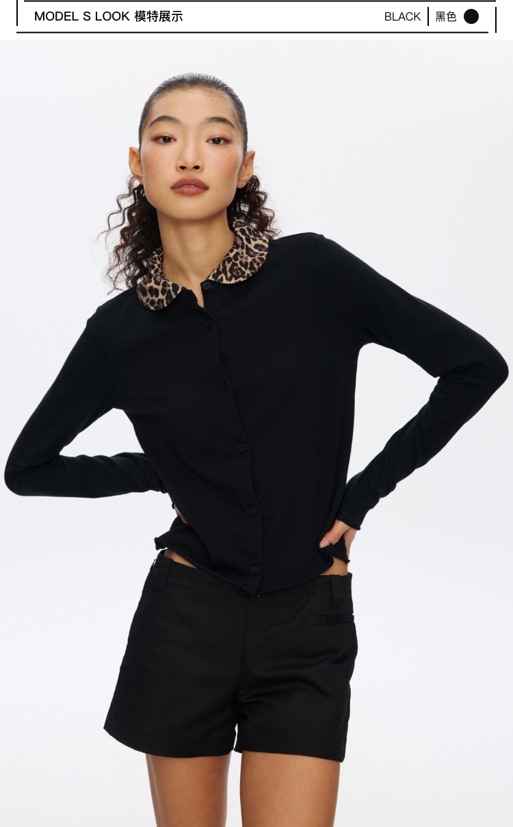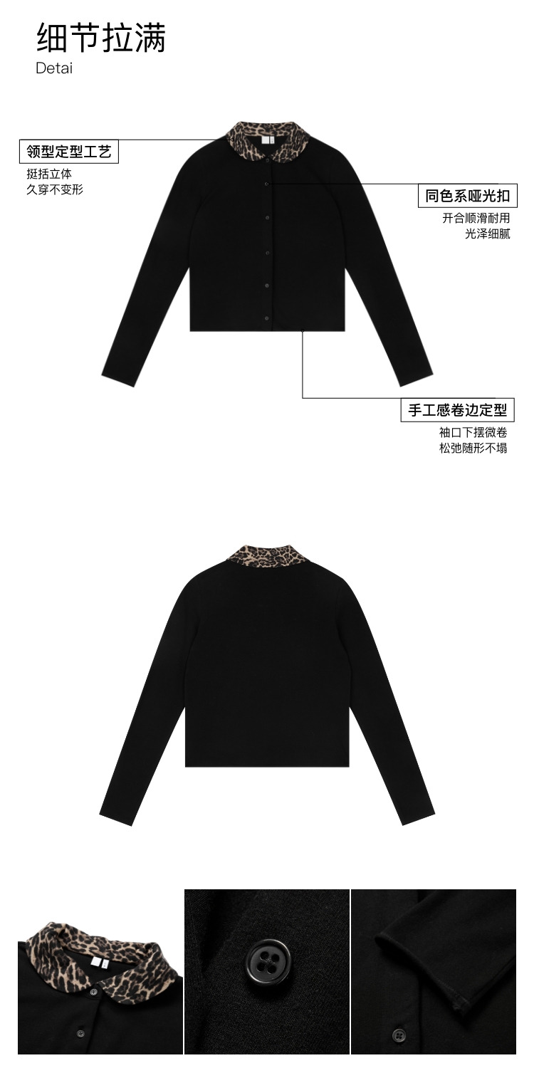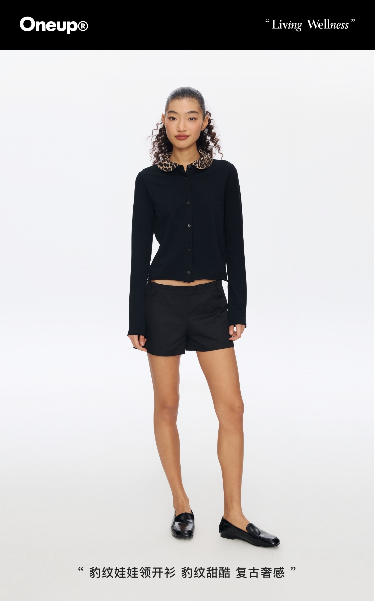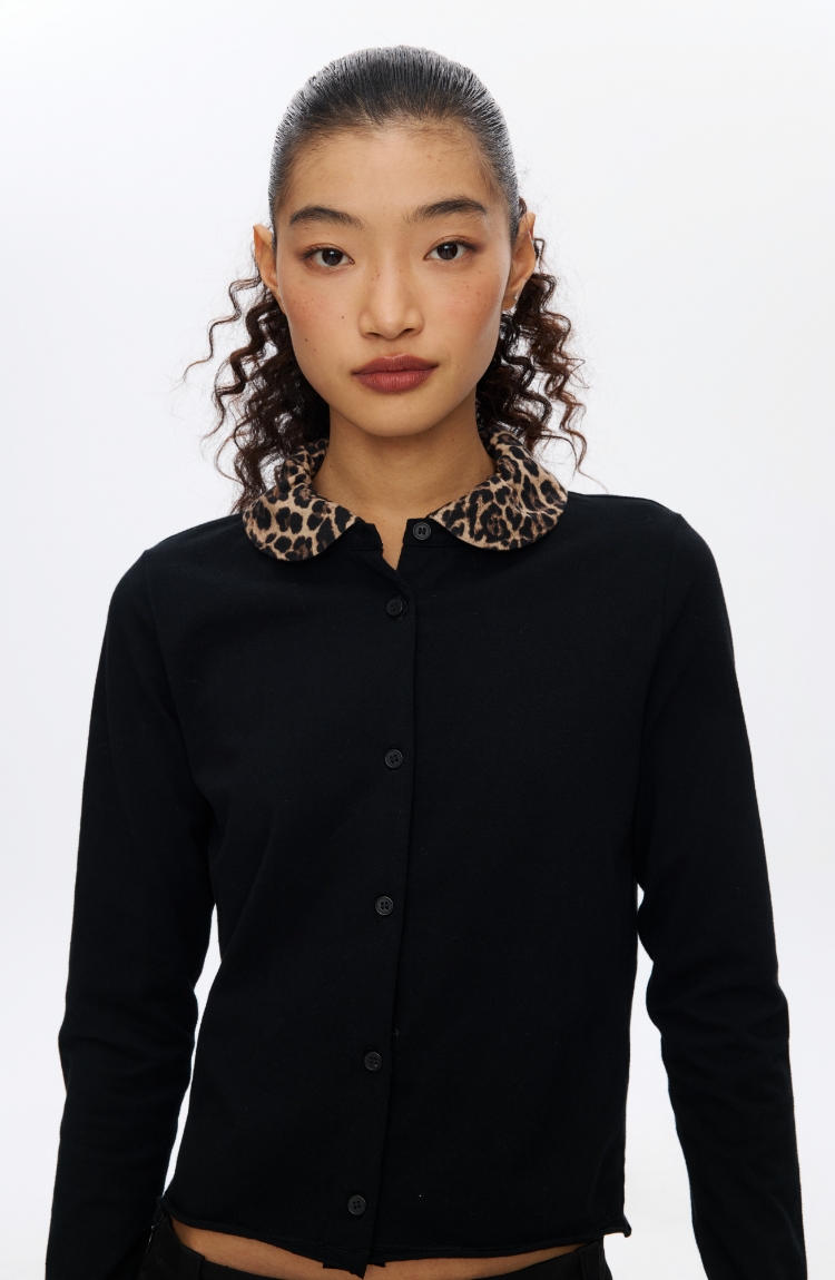 Oneup豹纹娃娃领开衫