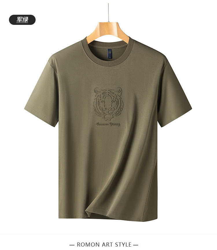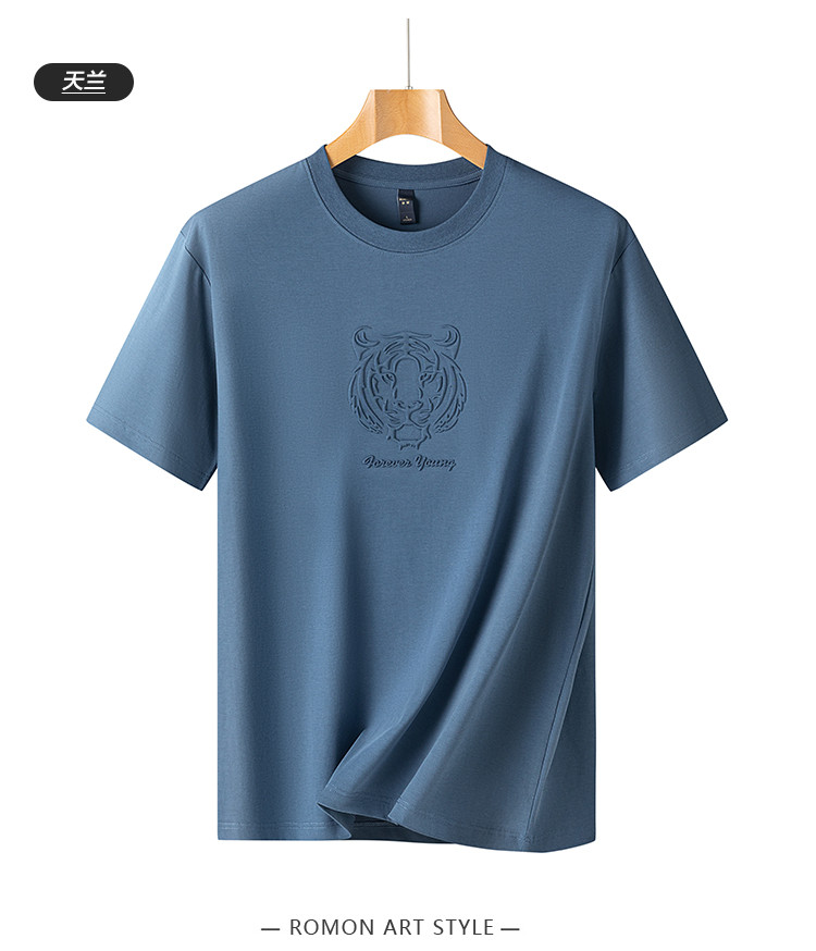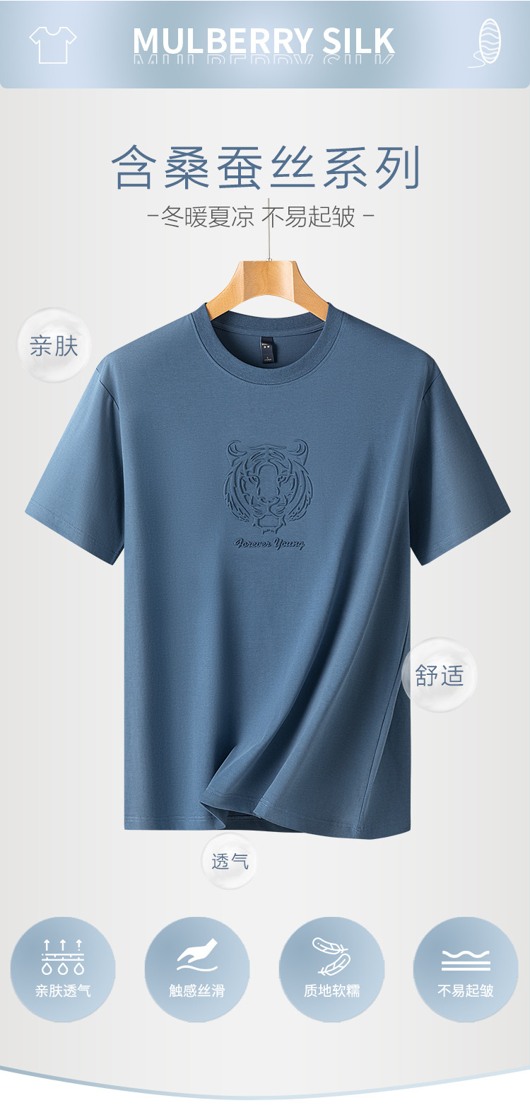 【含桑蚕丝】罗蒙夏季时尚印花男士T恤休闲百搭短袖t恤男舒适圆领短袖男