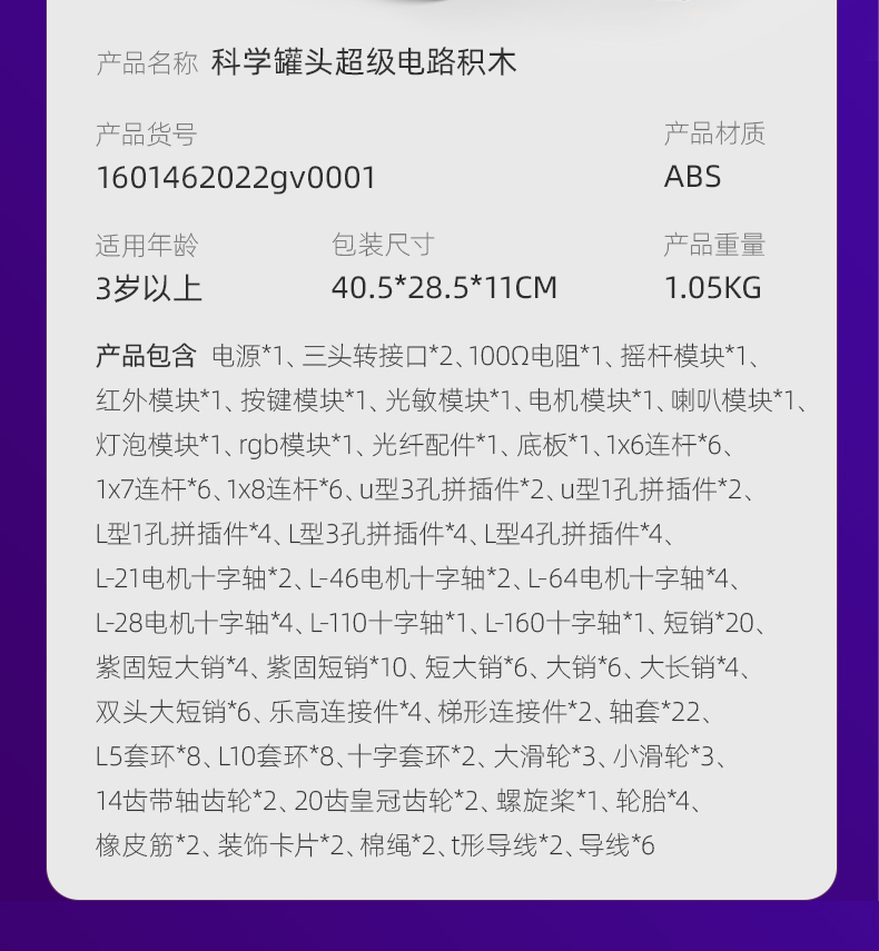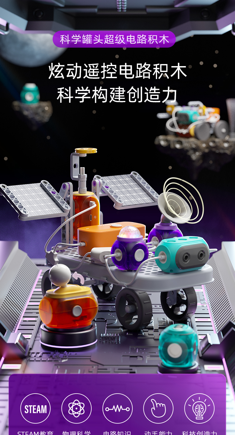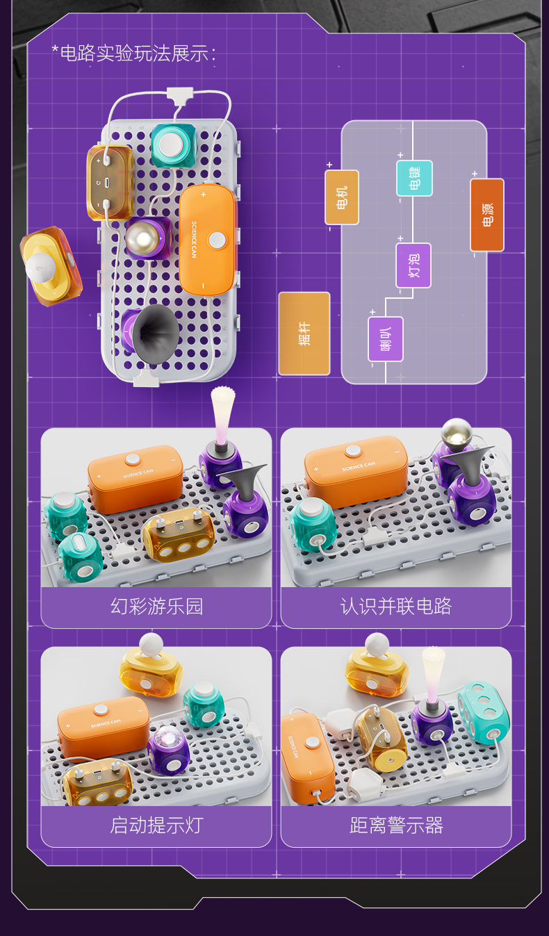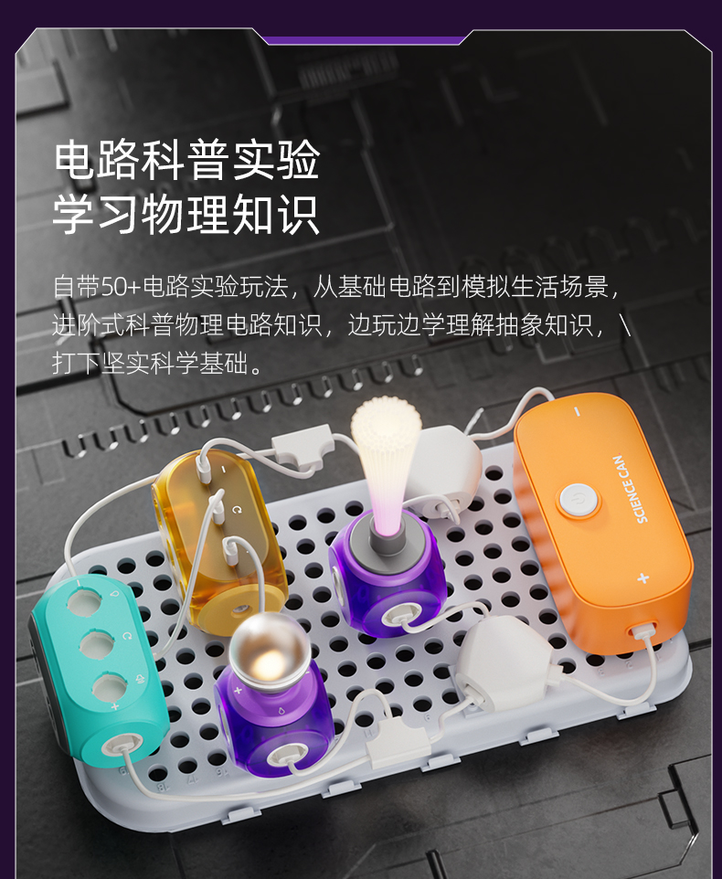 Science can科学罐头儿童电子百拼积木实验套装中小学生益智物理电学电路玩具
