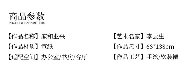 李云生《家和业兴》68*138cm 四字书法横幅作品 办公室/书房/客厅挂画
