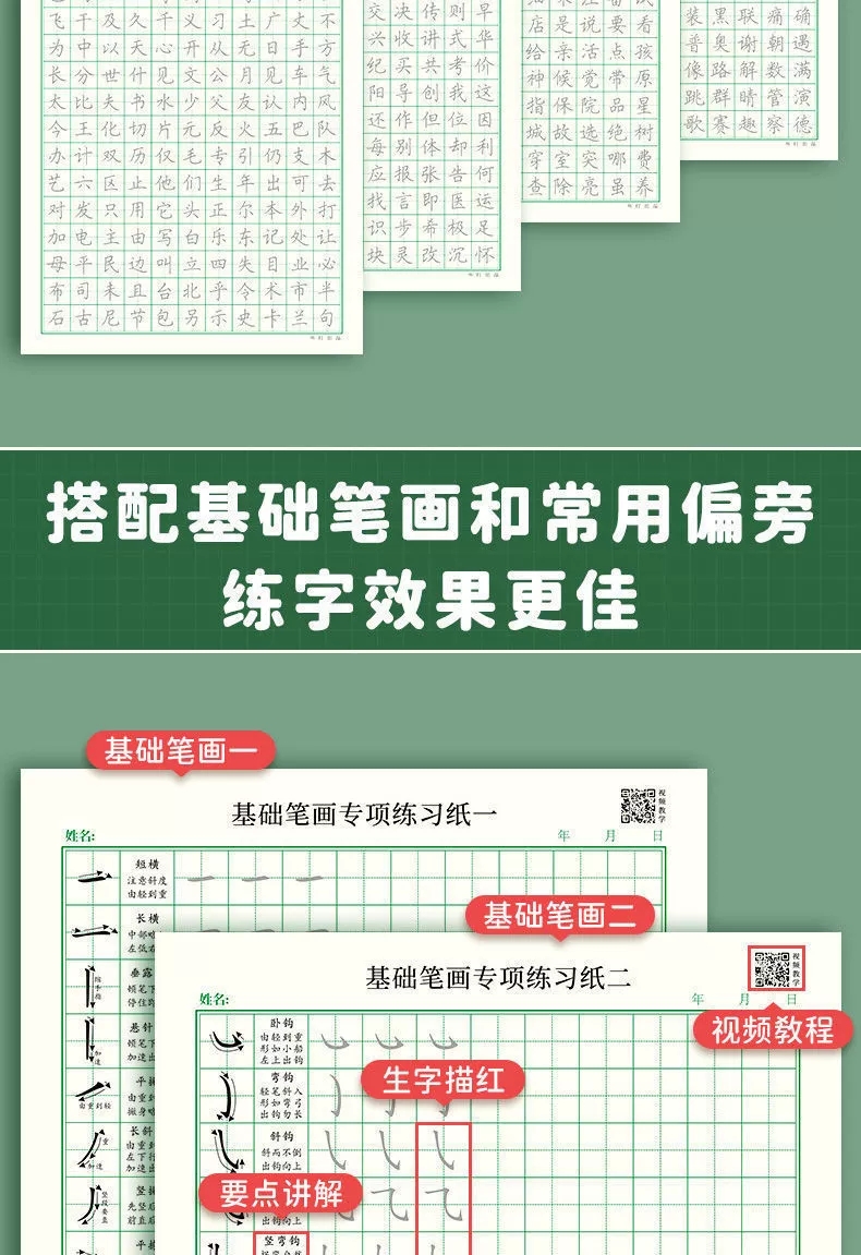 楷书速成练字点阵方法基础笔画偏旁控笔训练常用3000字硬笔楷书练字贴