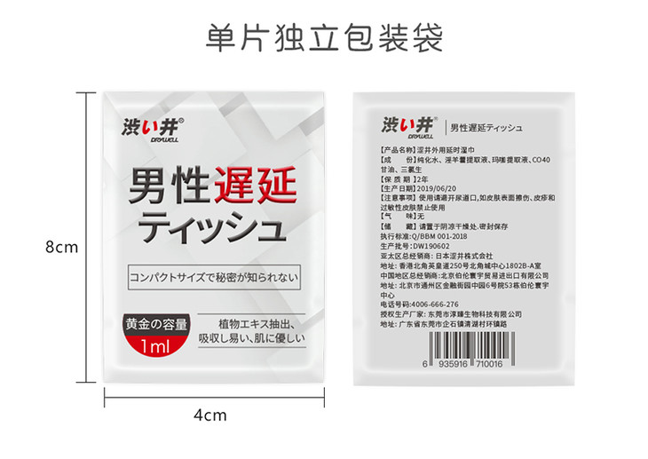 日本加藤鹰代言涩井 男用延时外用湿巾12片装