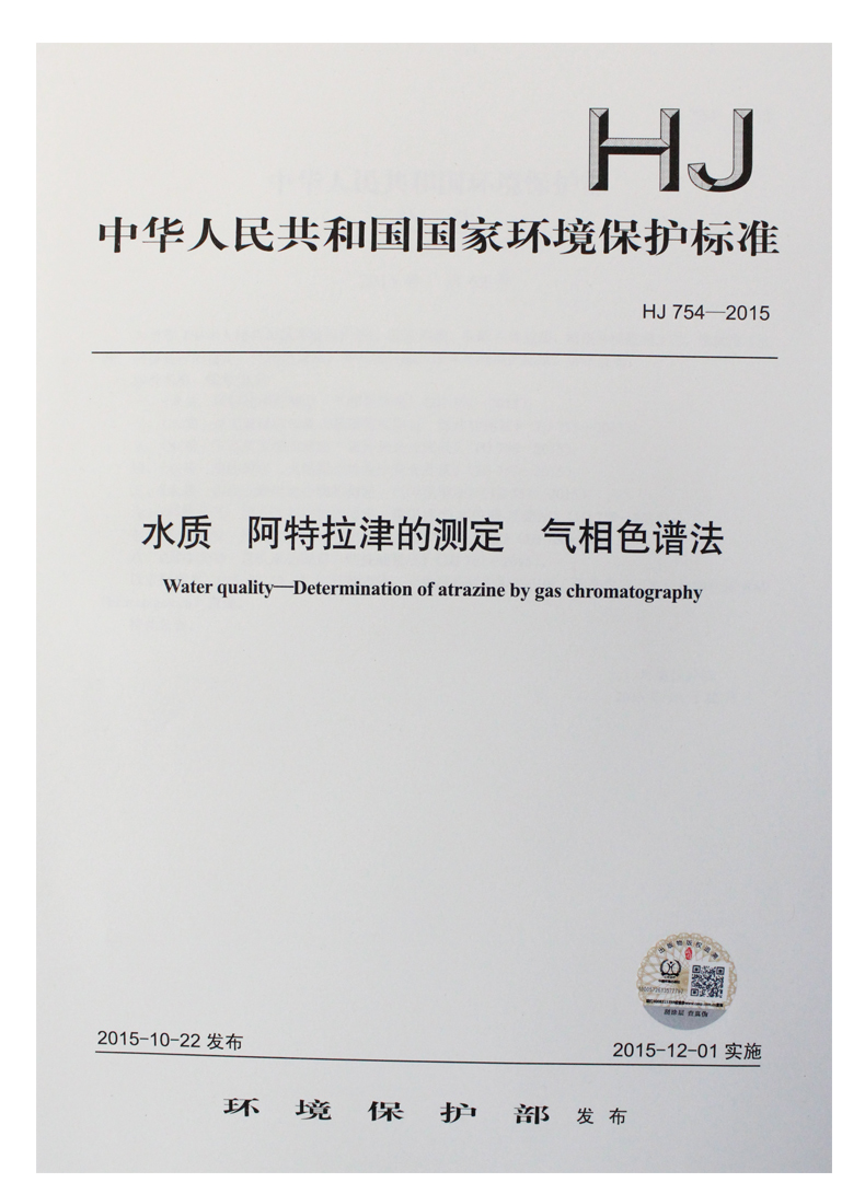 HJ 754-2015 水质 阿特拉津的测定 气相色谱法 国家标准 国标 GB 环境保护 135111420