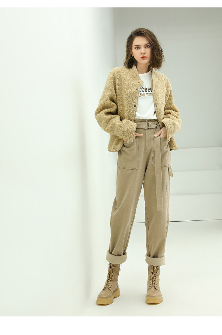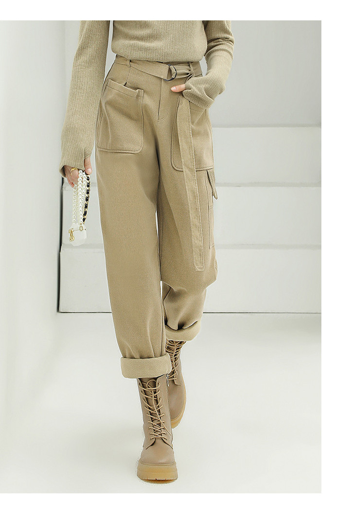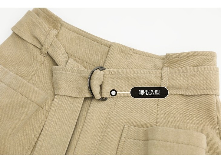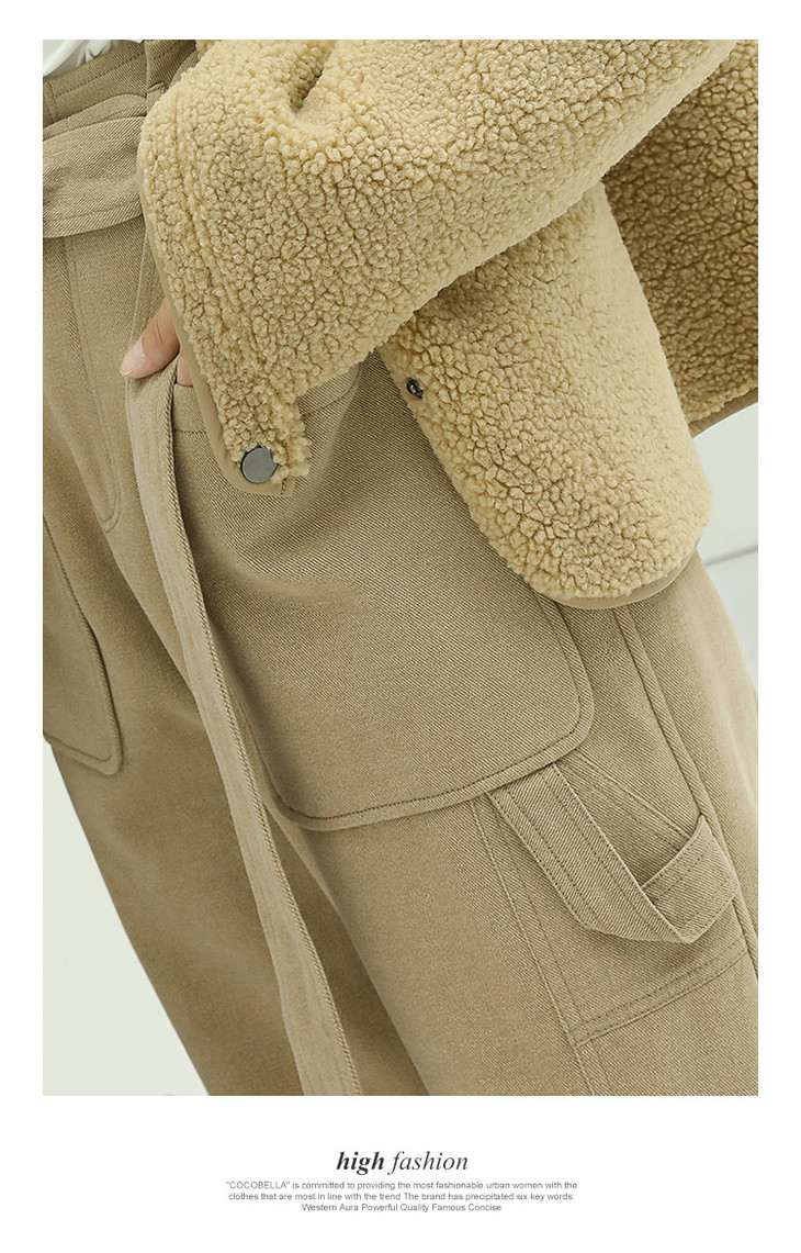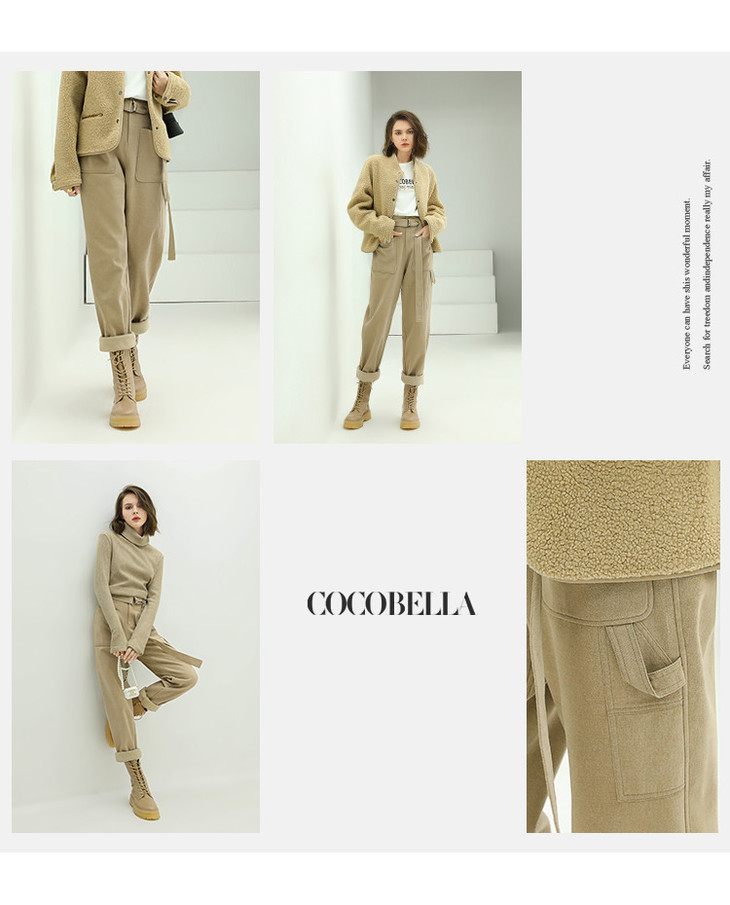 【限时特惠】COCOBELLA工装风卡其色水洗棉休闲裤女秋宽松高腰直筒裤PT818