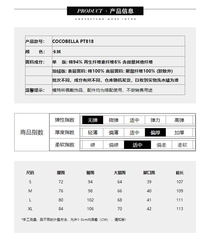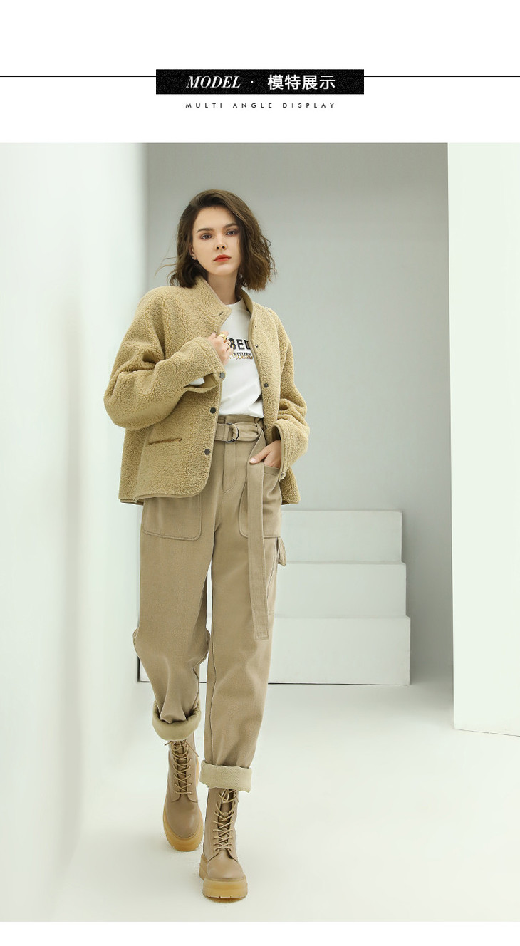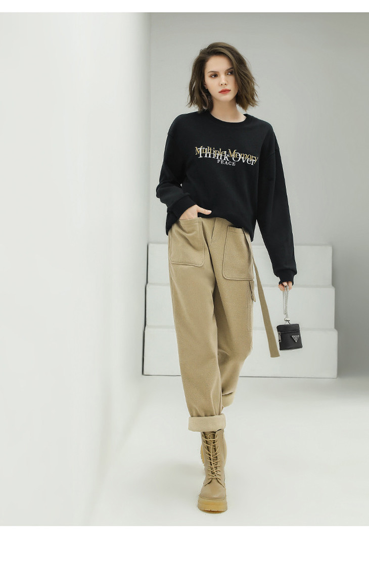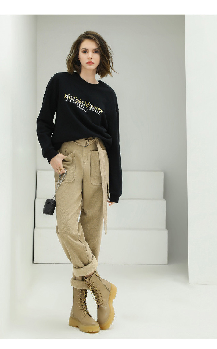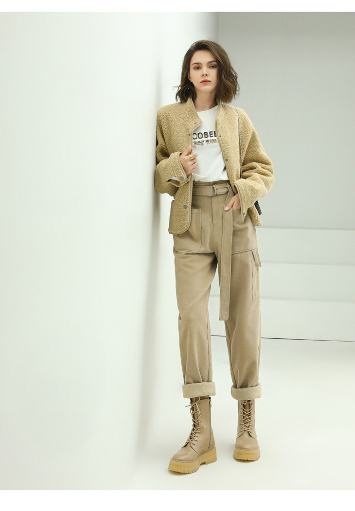 【限时特惠】COCOBELLA工装风卡其色水洗棉休闲裤女秋宽松高腰直筒裤PT818