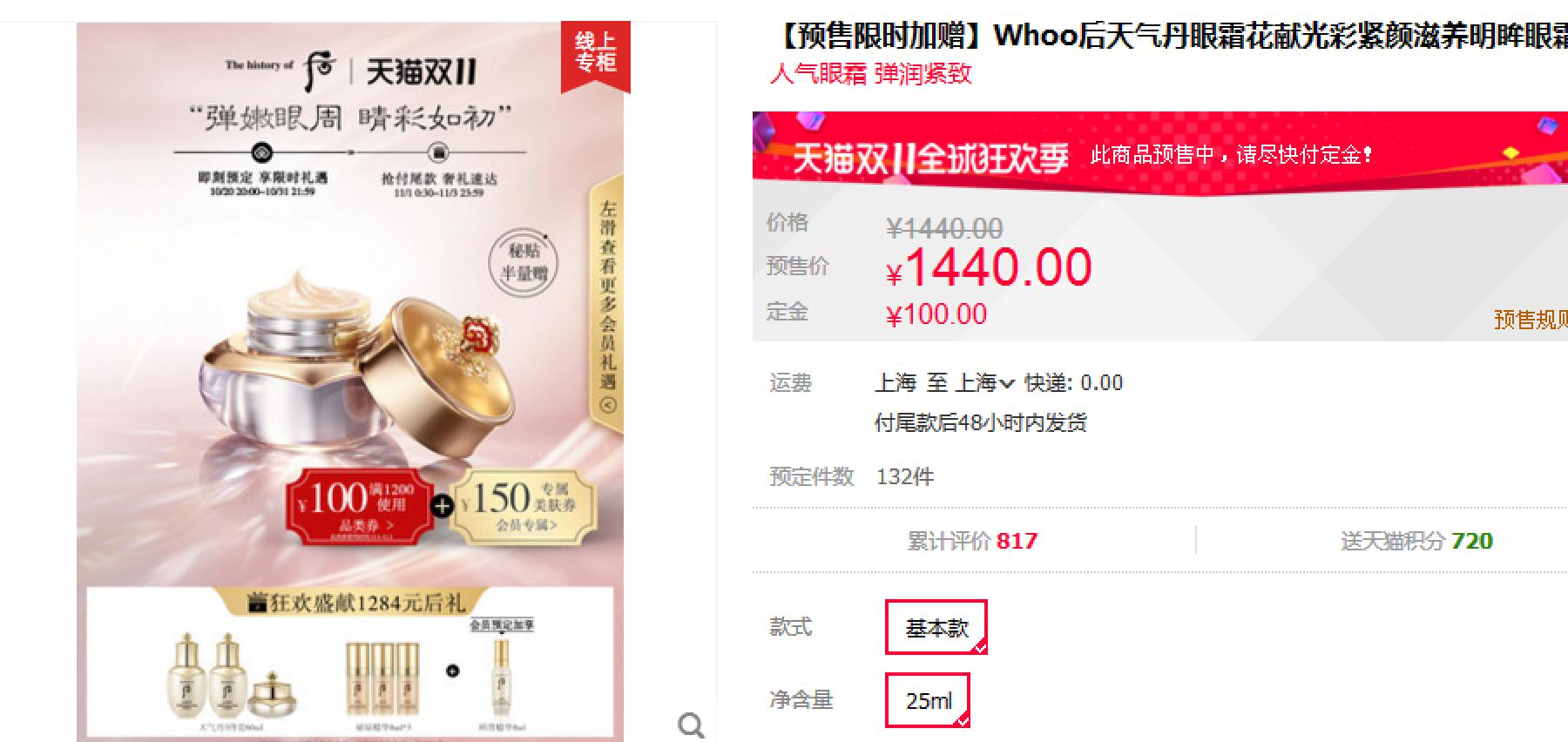 【3.15 大牌再降价】WHOO后天气丹华泫眼霜1ML*30