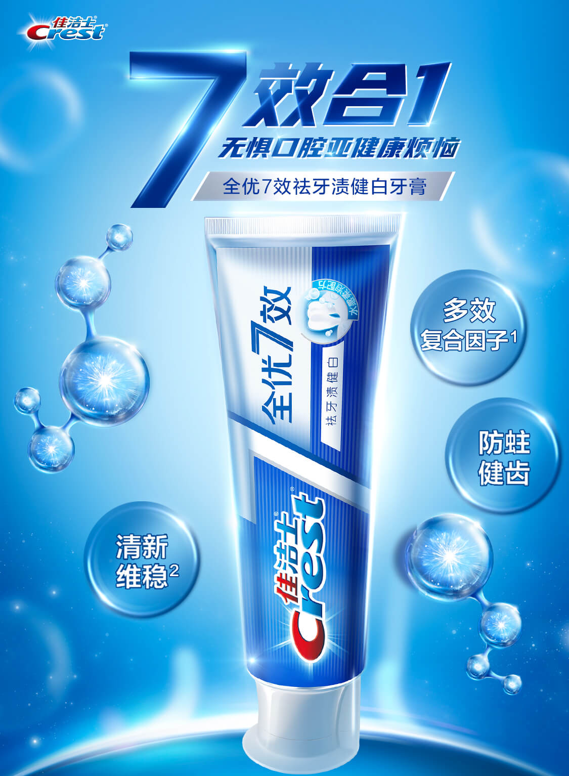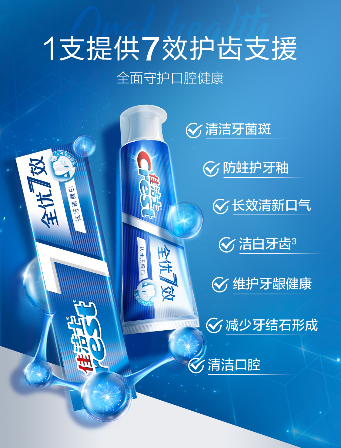 佳洁士牙膏全优7效 防蛀祛牙渍健白牙膏 180g(新老包装 随发货)7效合1 清新口气 全面健康防护