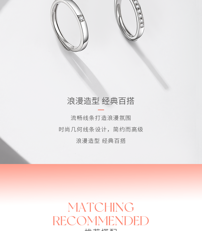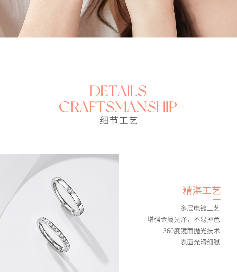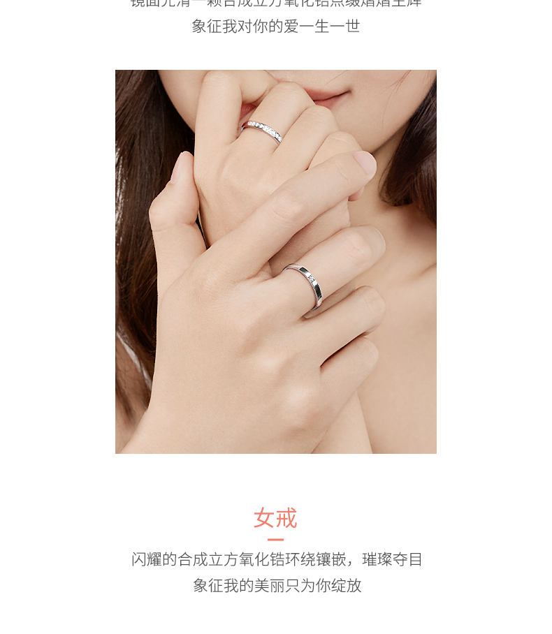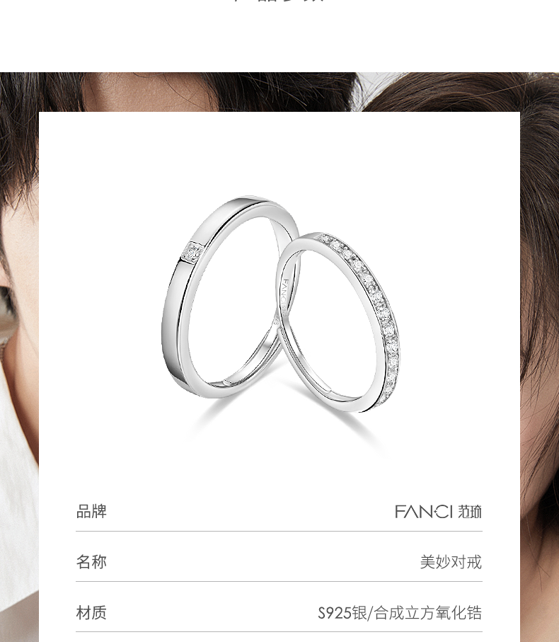 FANCI范琦柔情对戒925银情侣戒指简约表白约会周年纪念日生日情人节送男友女友礼物