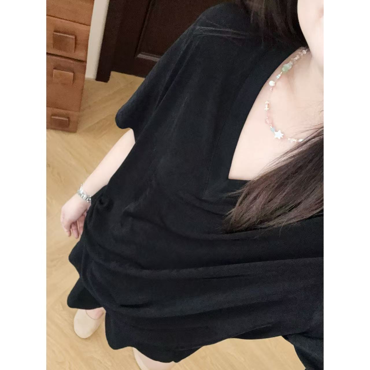 2025新品 佳佳同款【穿不旧的T】薄透大版V领短袖T恤显瘦垂感宽松百搭基础