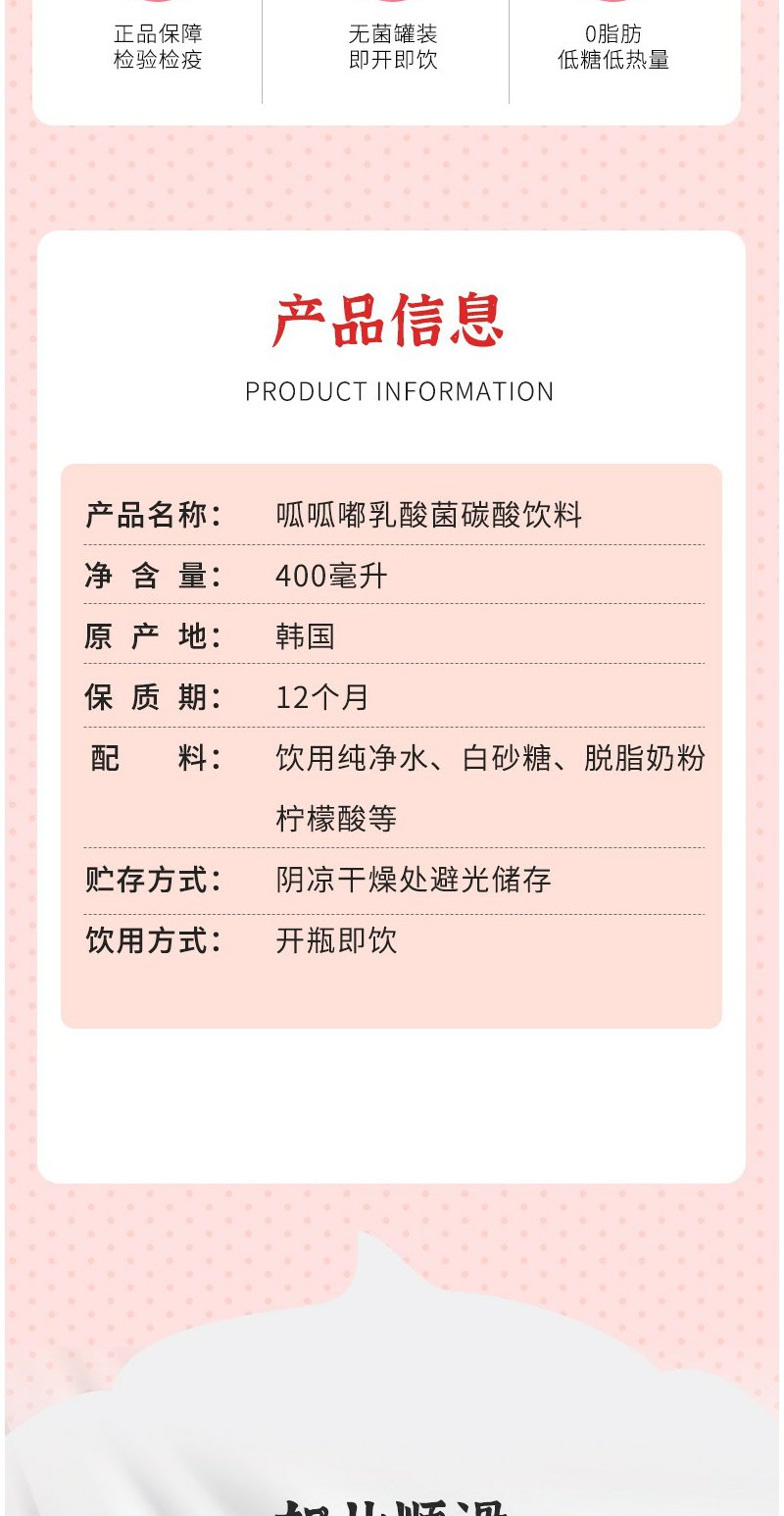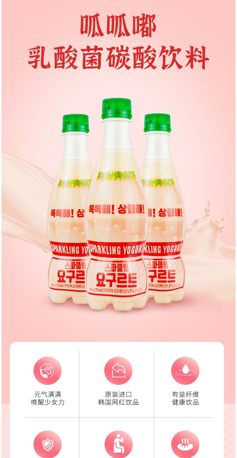 呱呱嘟 乳酸菌碳酸饮料汽水饮品 韩国进口 400ml*6瓶