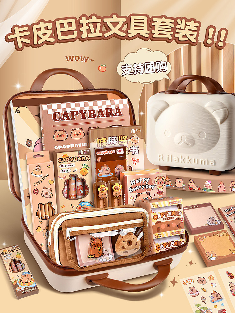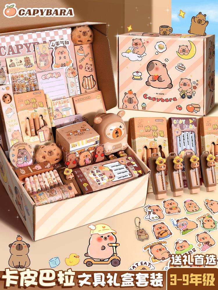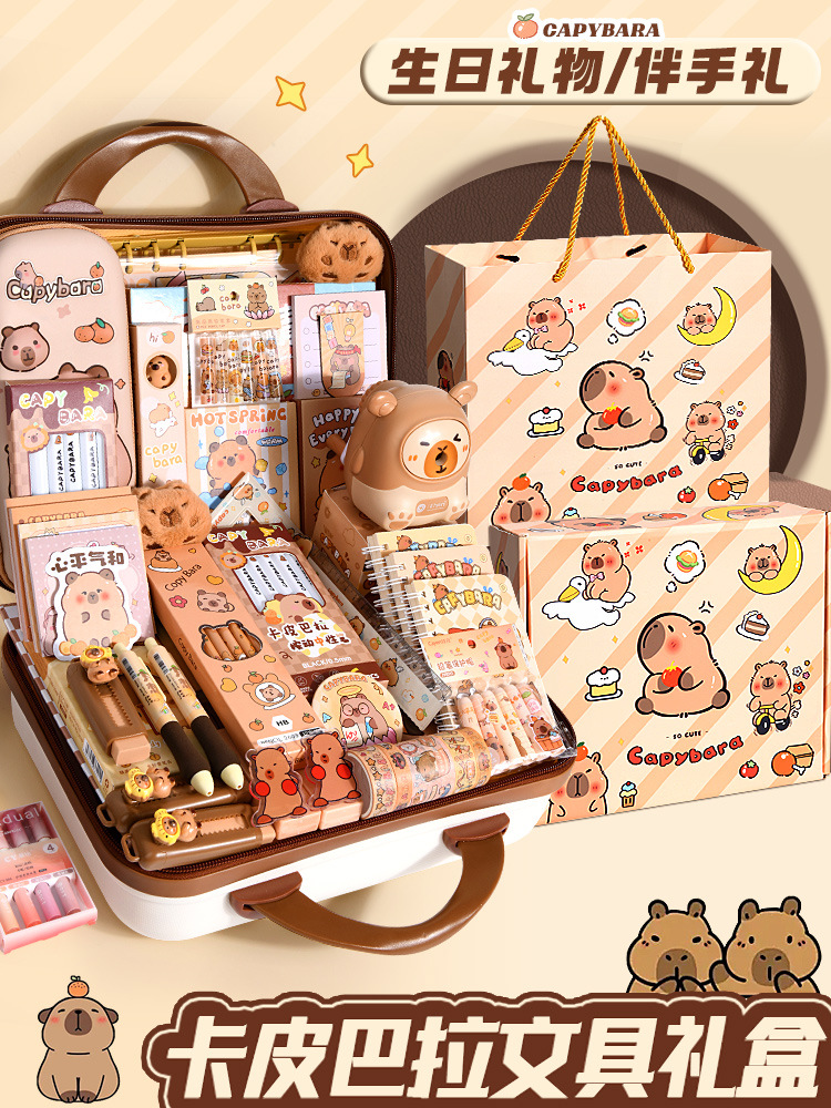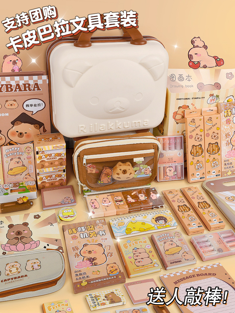 【卡皮巴拉文具礼盒套装】风琴包/安静书/便利贴/口袋本/削笔机/笔袋/线圈本/荧光笔 实用美观