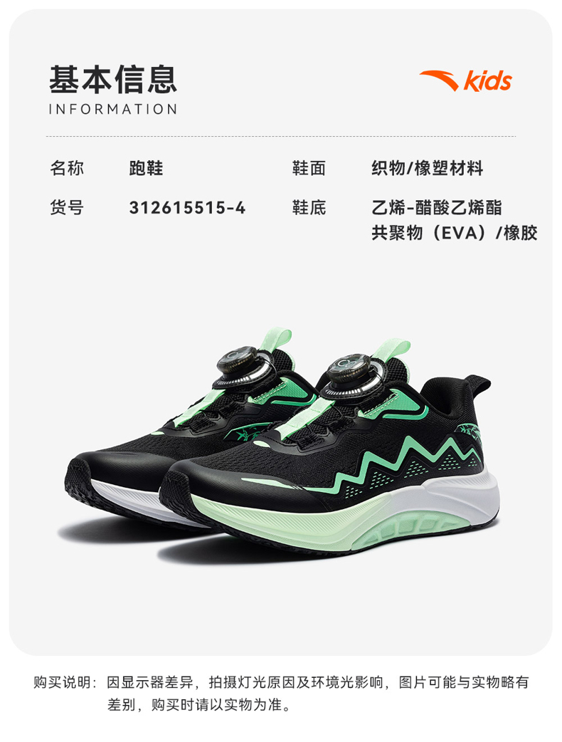 足弓安踏儿童男大童跑鞋2026年新款防滑耐磨中大童旋钮口日常跑鞋312615515