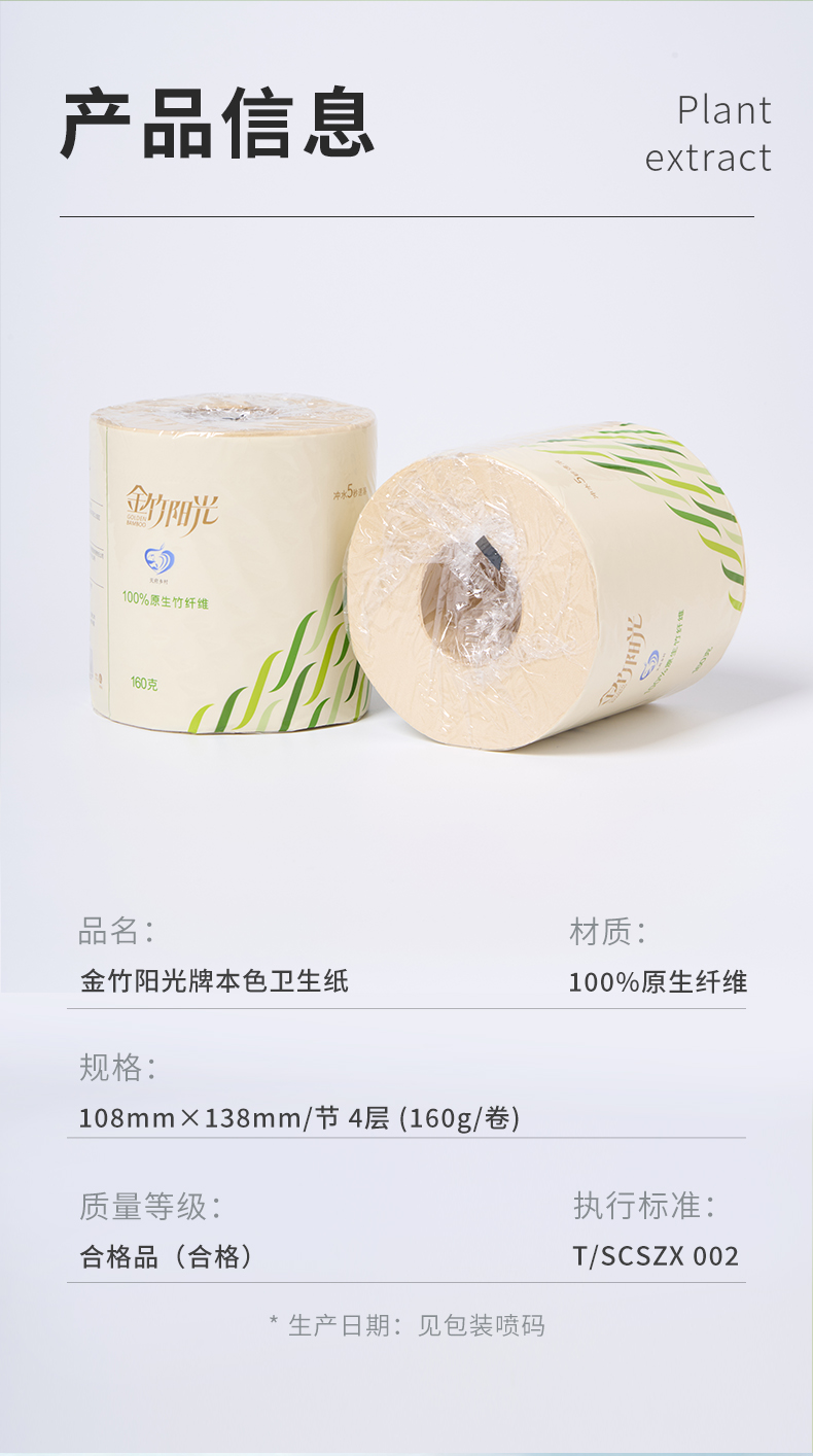 金竹阳光医护母婴级本色卫生纸108mm*138mm*4层 160g/卷(有芯)20卷/箱