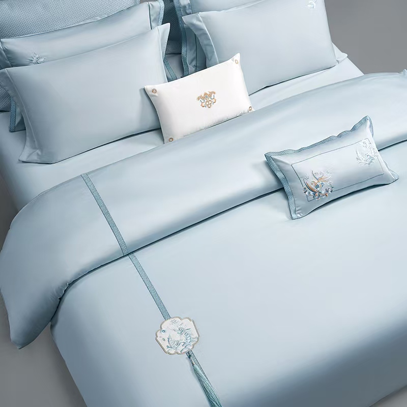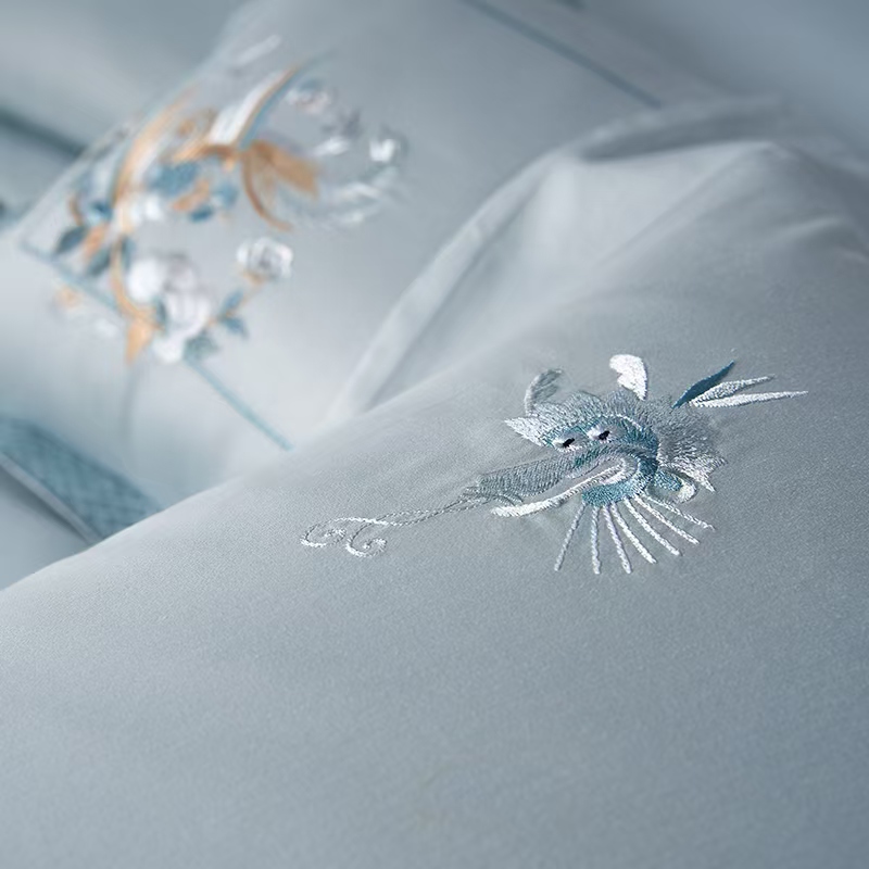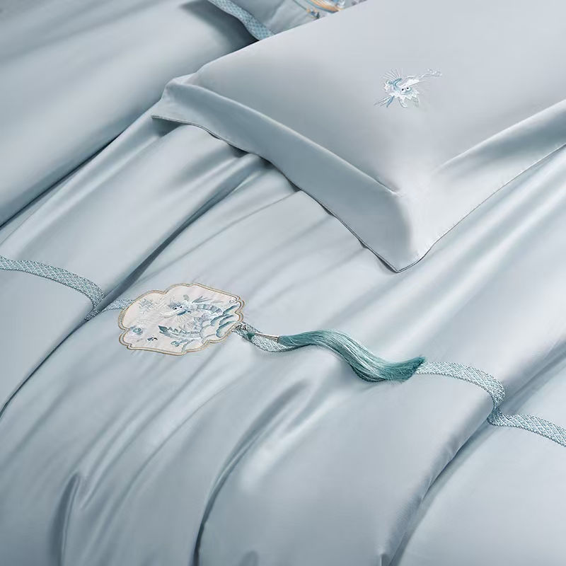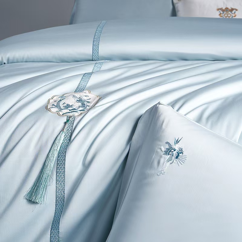 梦洁 云锦缎四件套 蒸蒸日上(云水蓝