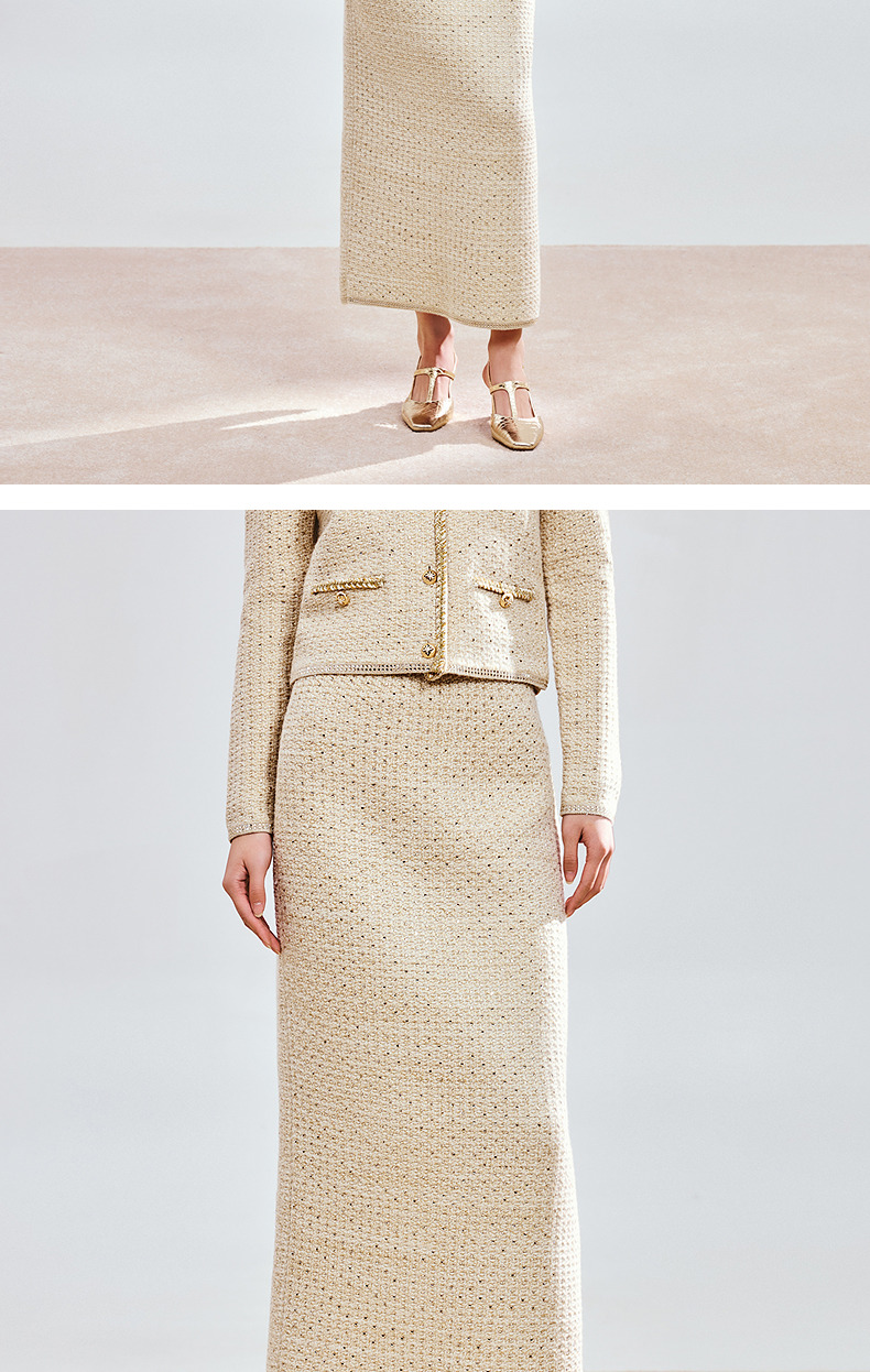 玛克门店发货:MAXRIENY轻奢小香风鎏金半裙(货号:MC85SK805)