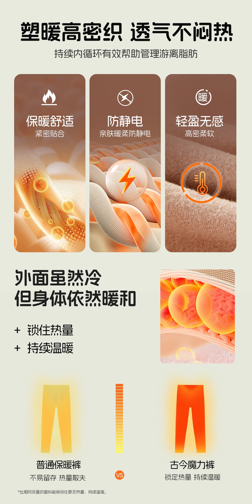 甄选 | 古今保暖裤女磨绒发热秋裤内穿紧身秋冬季加绒棉裤无痕打底裤绒裤