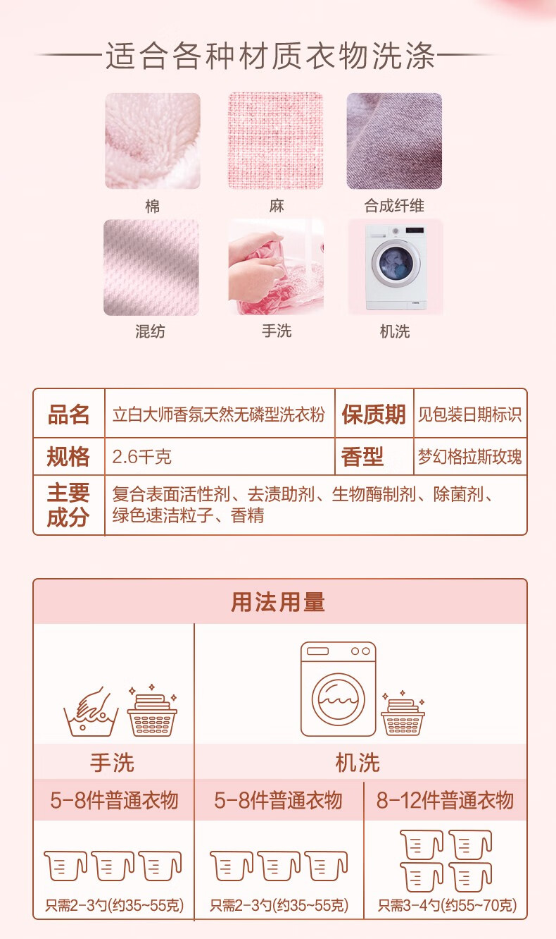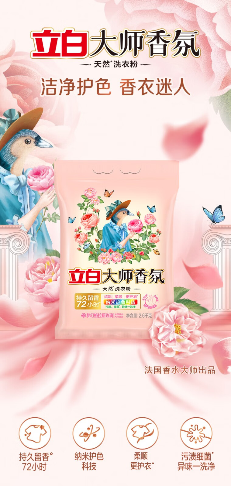 积分免费兑:立白洗衣粉 大师玫瑰香氛洗衣粉大袋 持久留香 洁净护衣 机洗手洗 带导流嘴】8.52斤/袋香氛洗衣粉