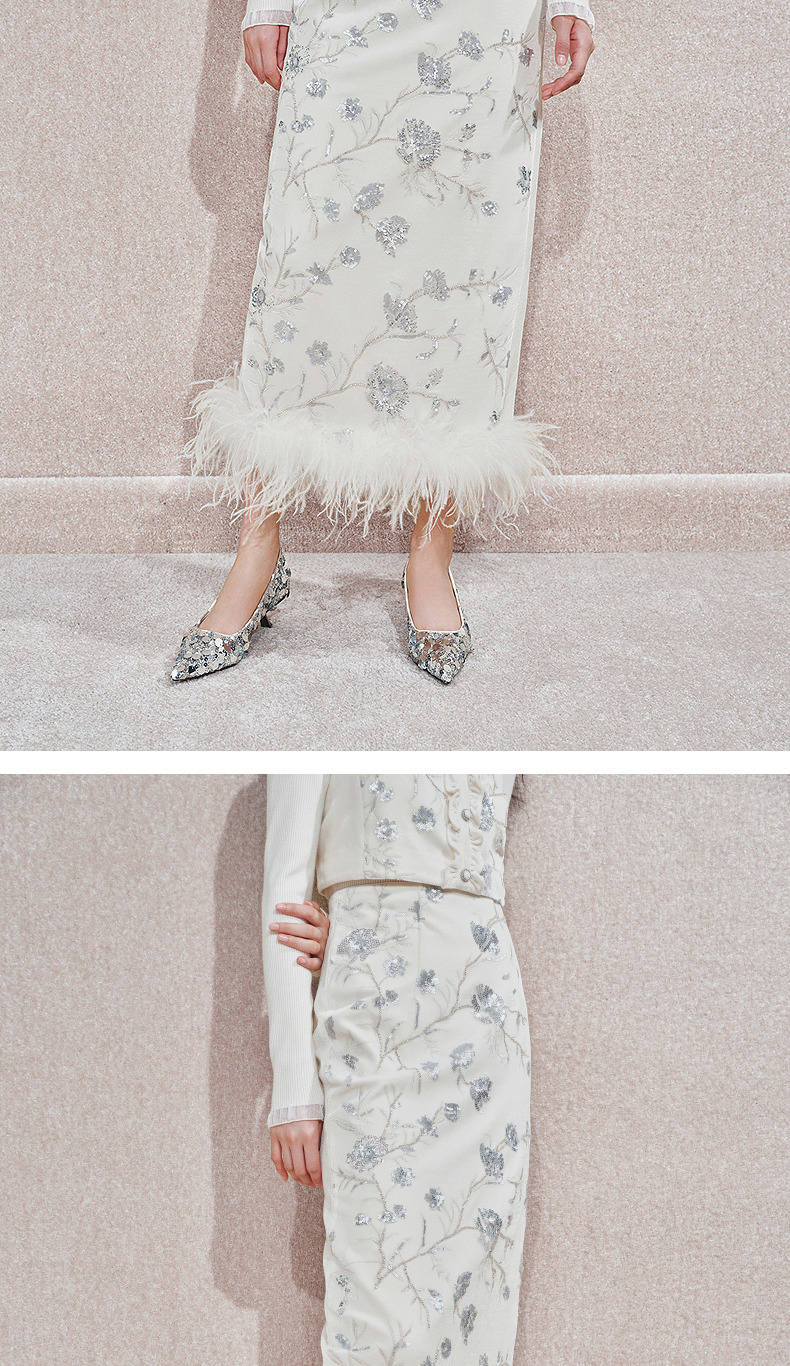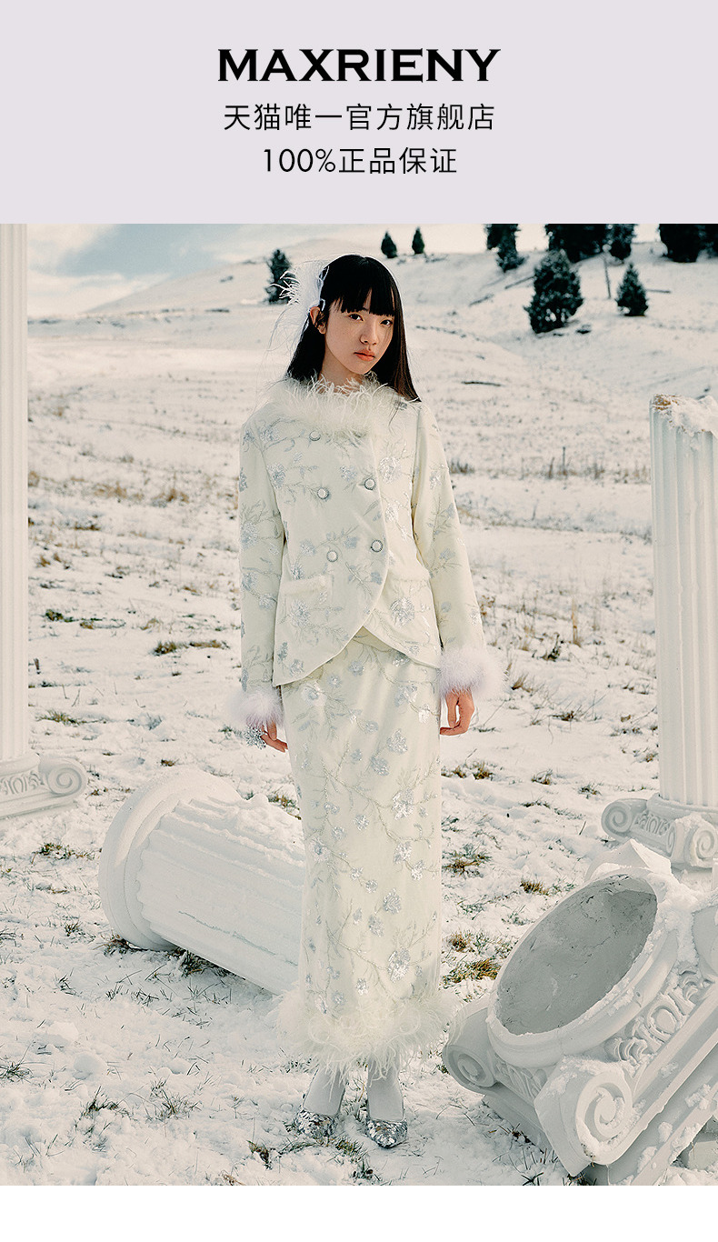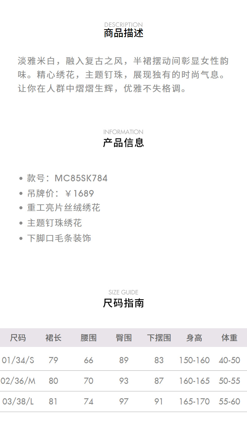 玛克门店发货:MAXRIENY精致复古感重工亮片丝绒绣花半裙(货号:MC85SK784)