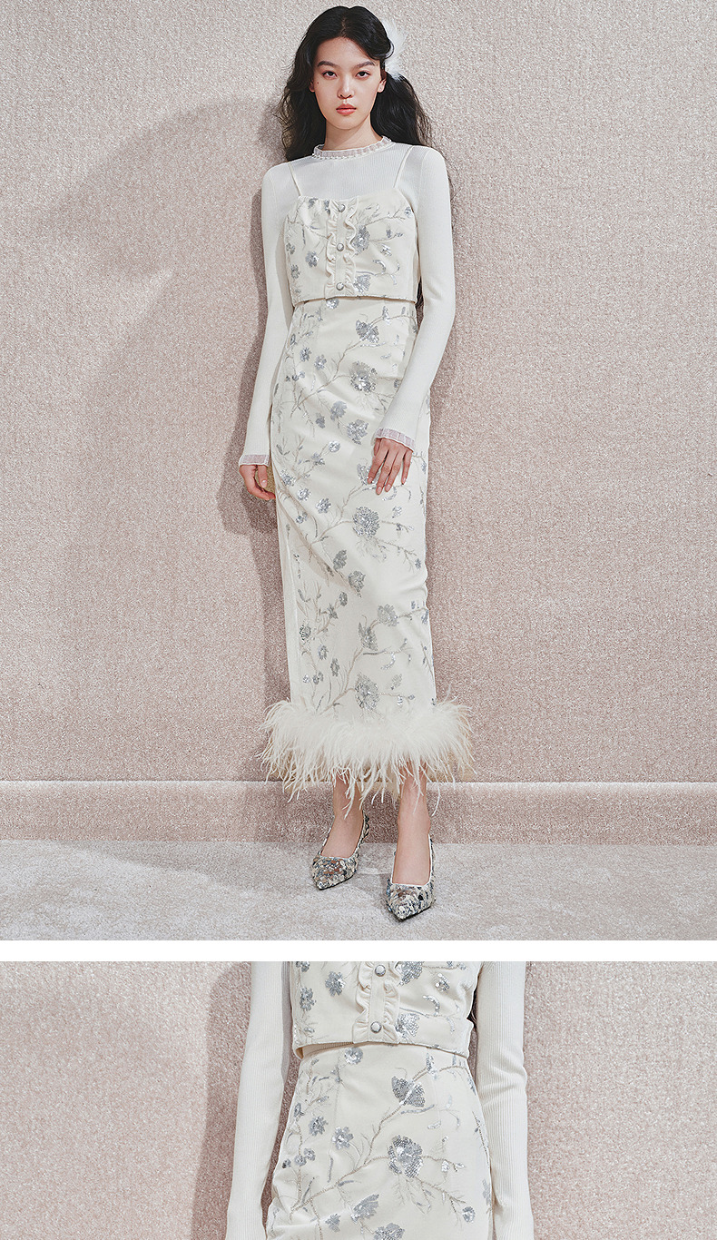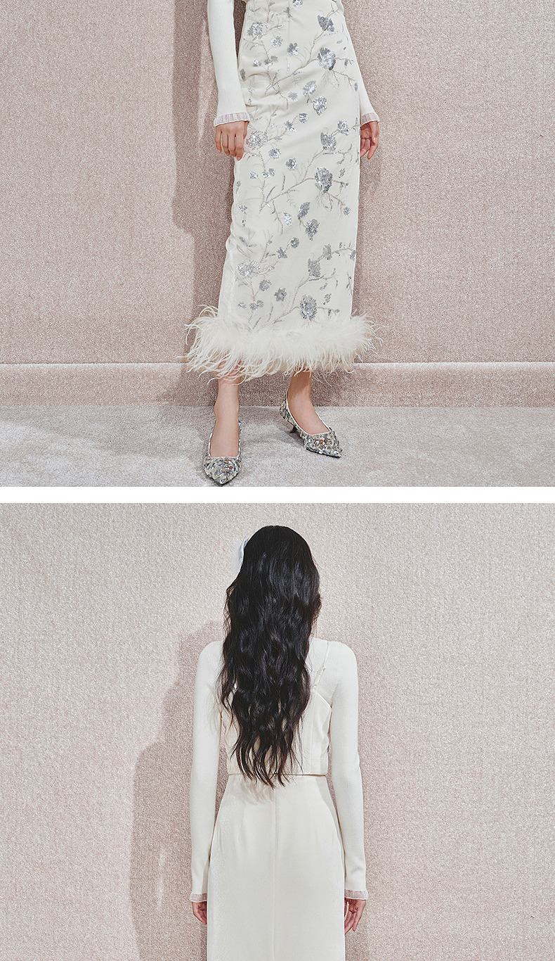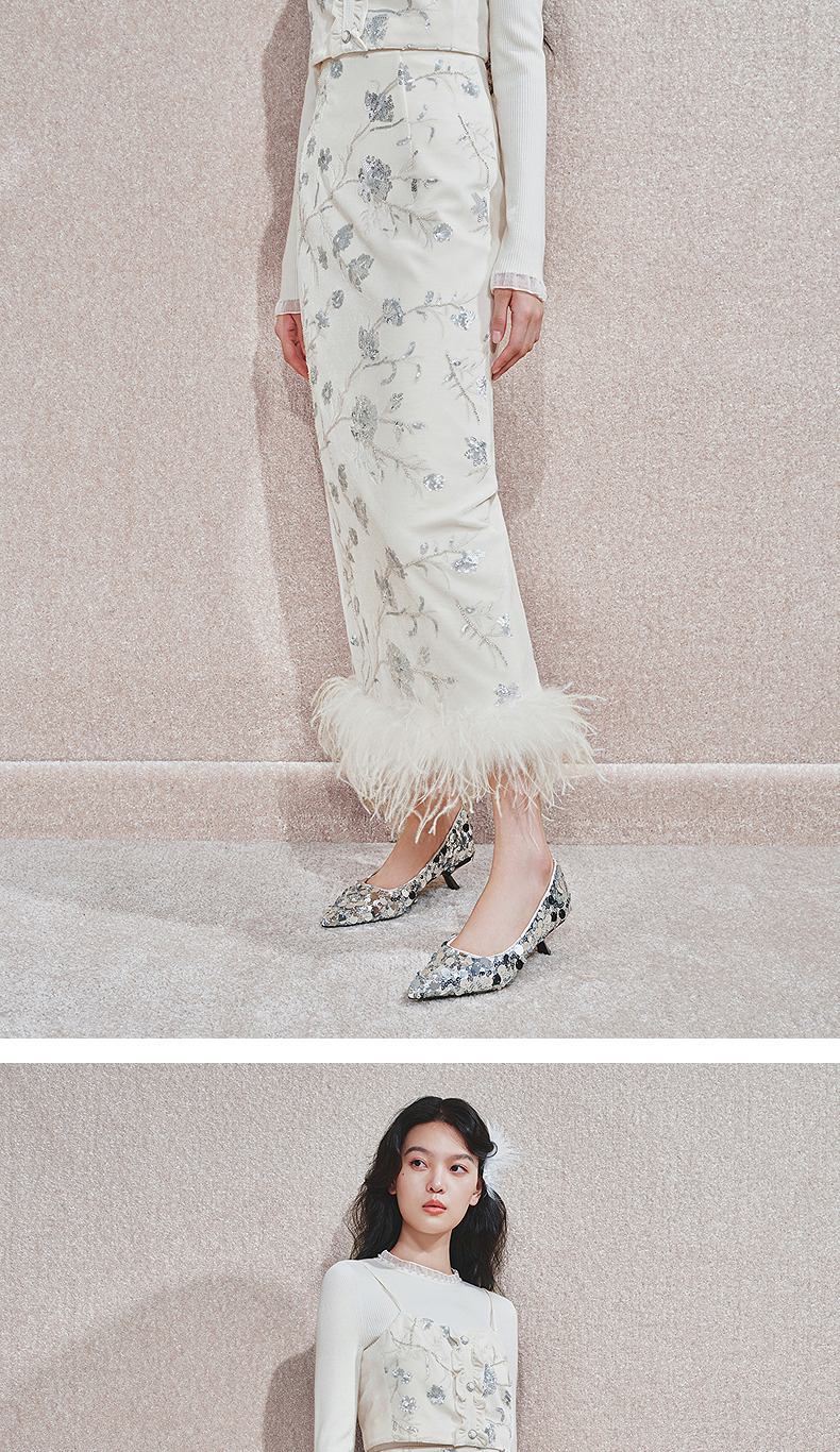 玛克门店发货:MAXRIENY精致复古感重工亮片丝绒绣花半裙(货号:MC85SK784)