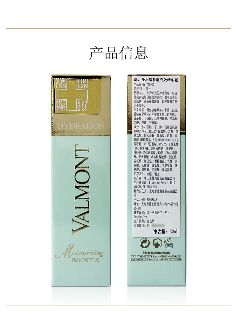 Valmont/法儿曼水润补湿升效精华露 高保湿补水玻尿酸精华 心选到家