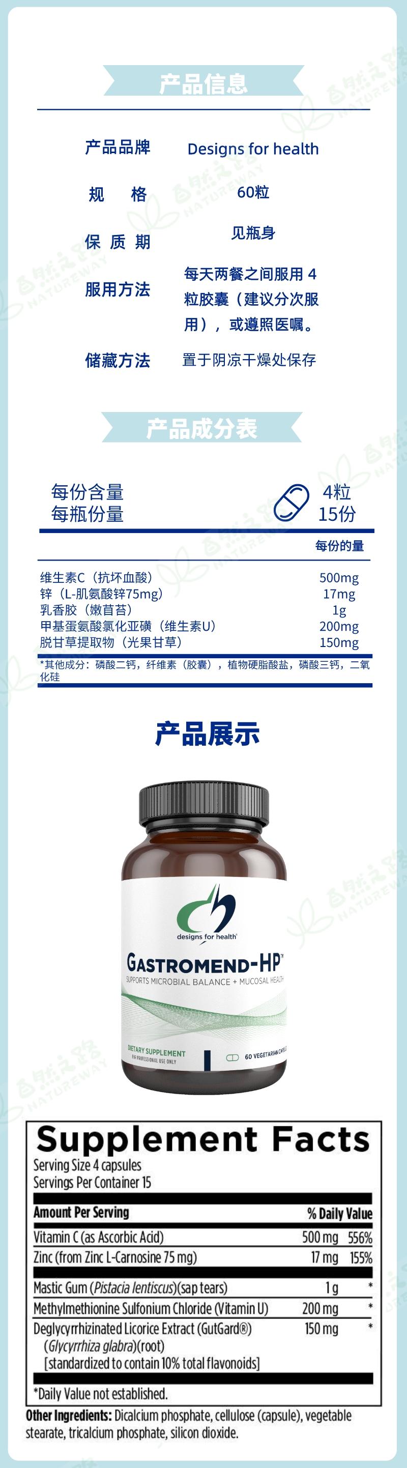 自然之路健康设计 胃肠道粘膜补充剂 去除幽门、含乳香胶 60粒