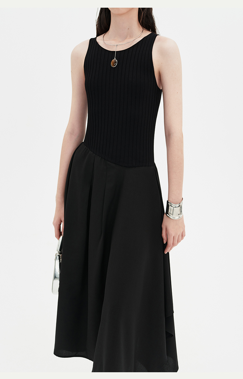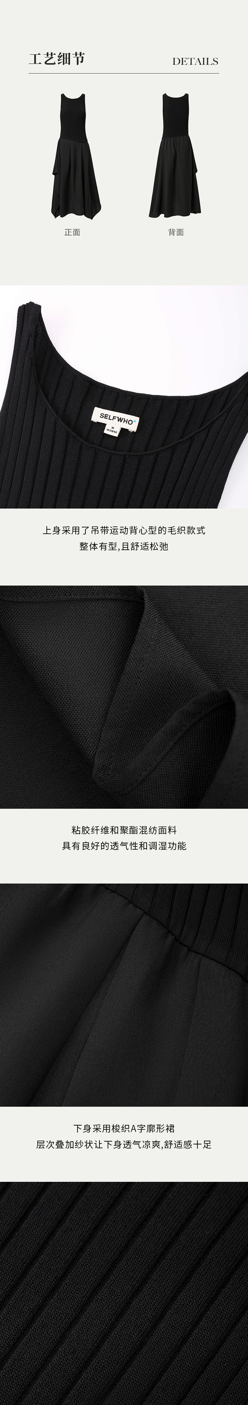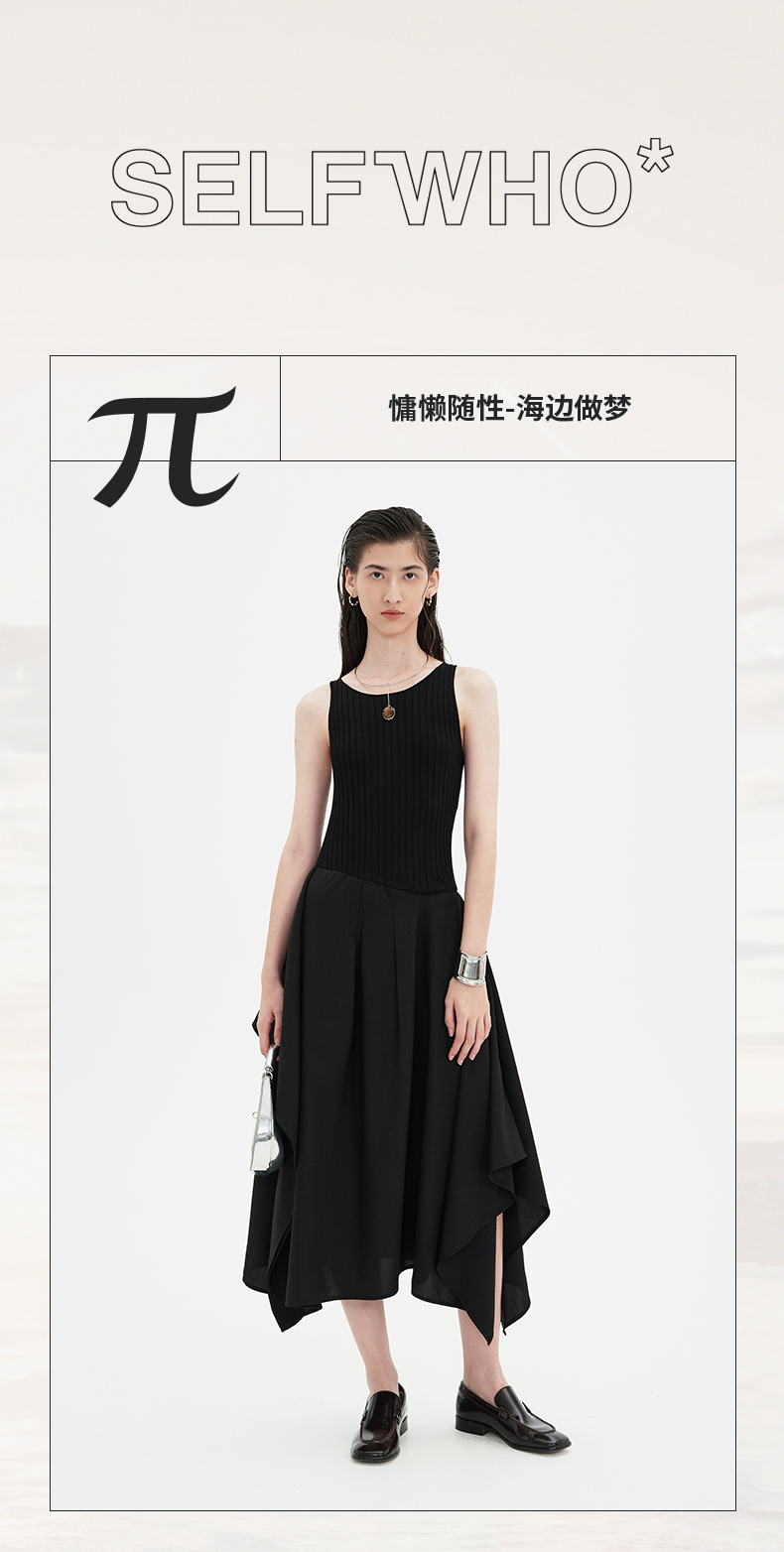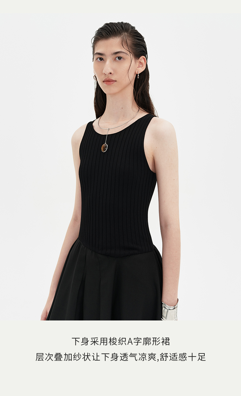 SELFWHO黑色针织背心连衣裙女2024新款夏季设计感小个子无袖裙子