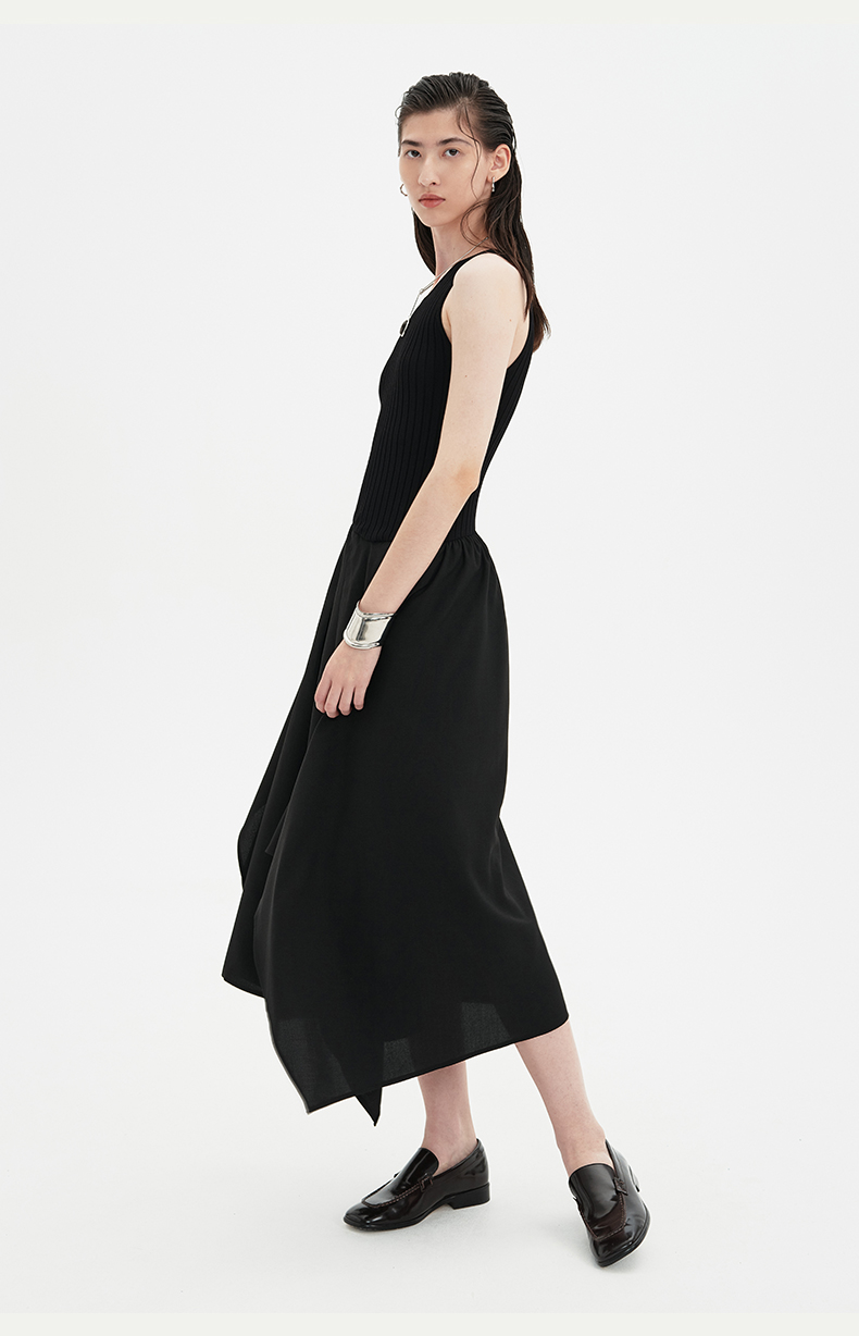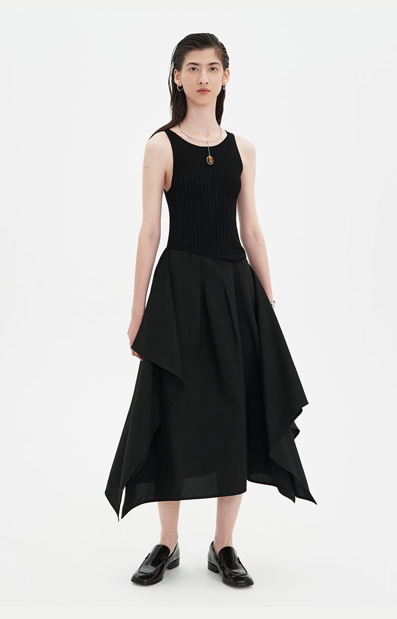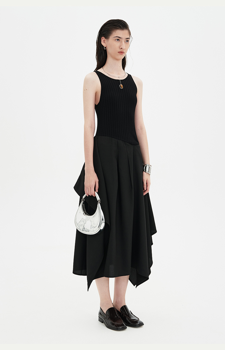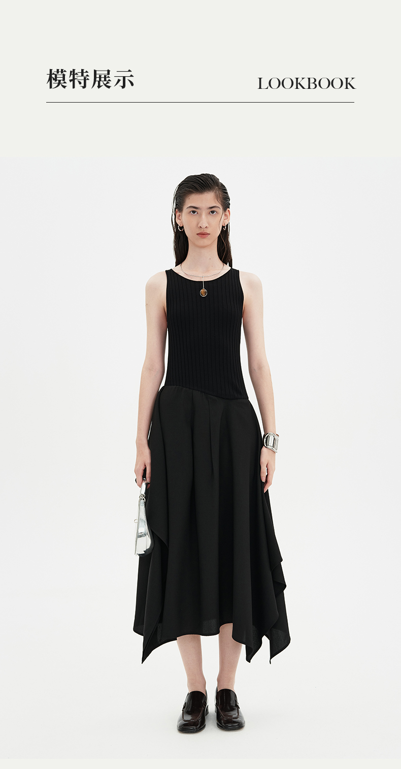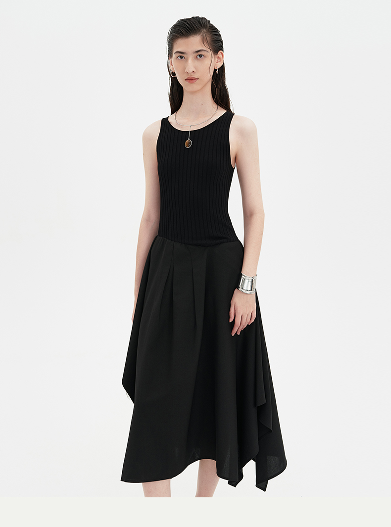 SELFWHO黑色针织背心连衣裙女2024新款夏季设计感小个子无袖裙子