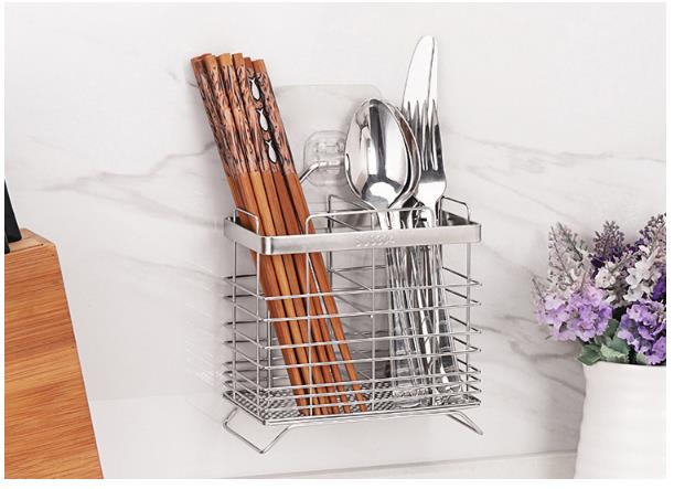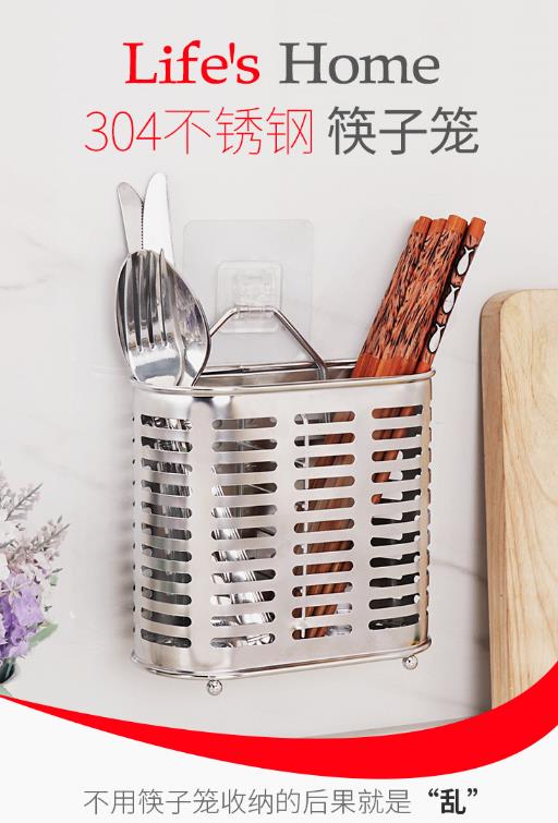 【筷子筒】304不锈钢筷子筒家用筷子桶厨房挂式创意勺子收纳盒筷子笼沥水架