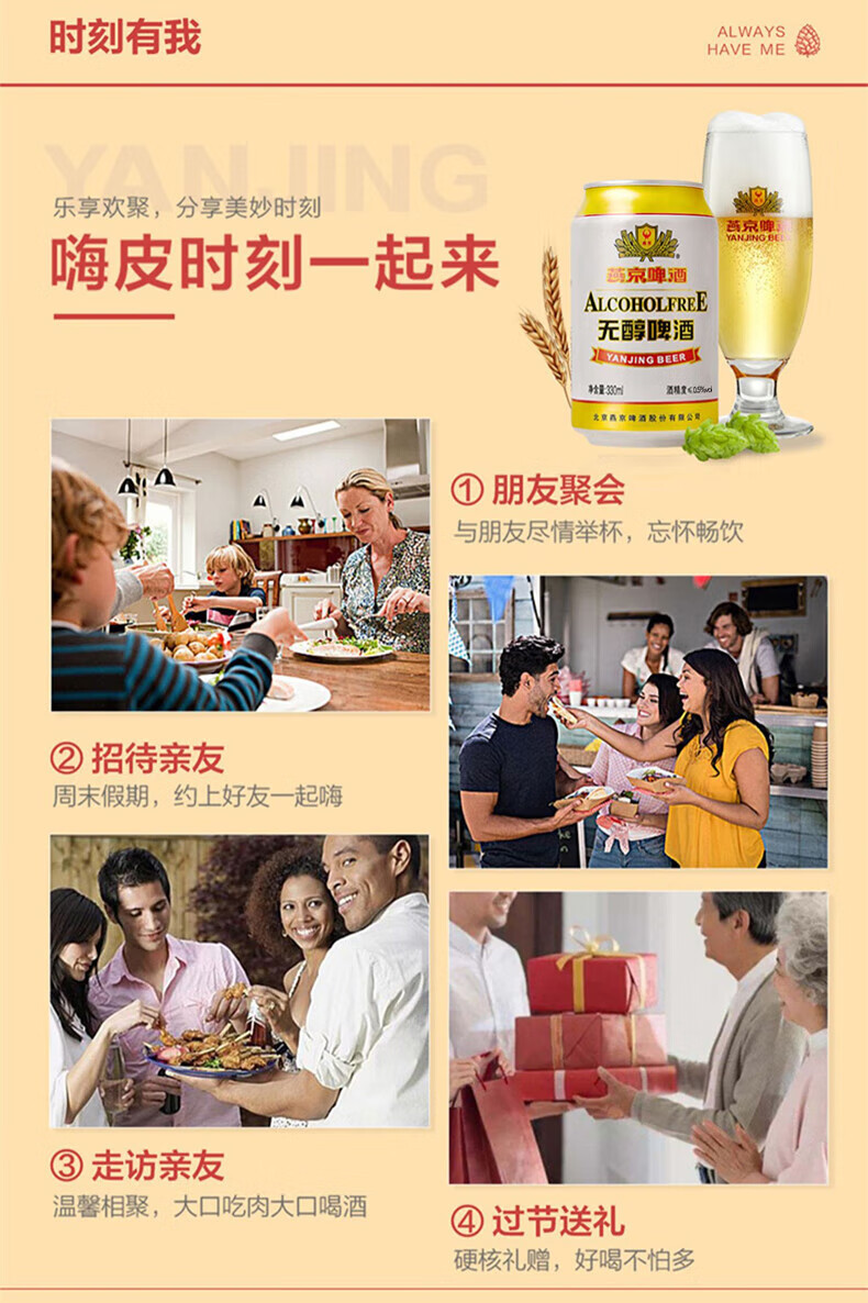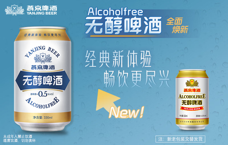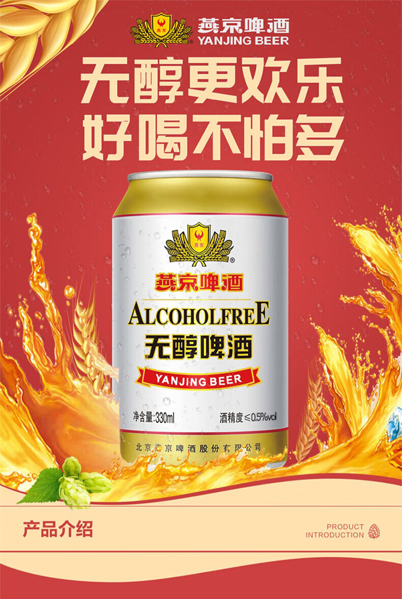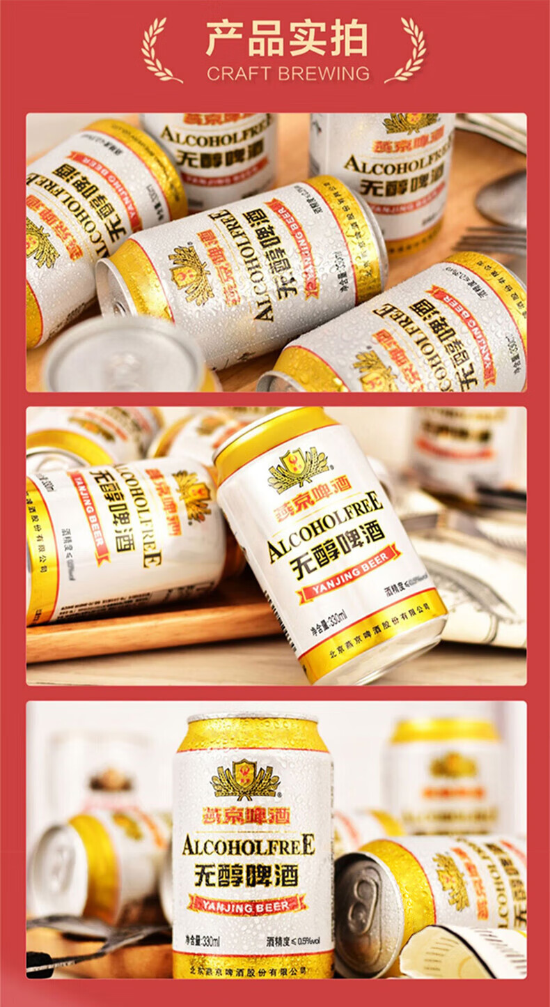 燕京啤酒:原味无醇白啤 330ml*24听 低度啤酒 整箱