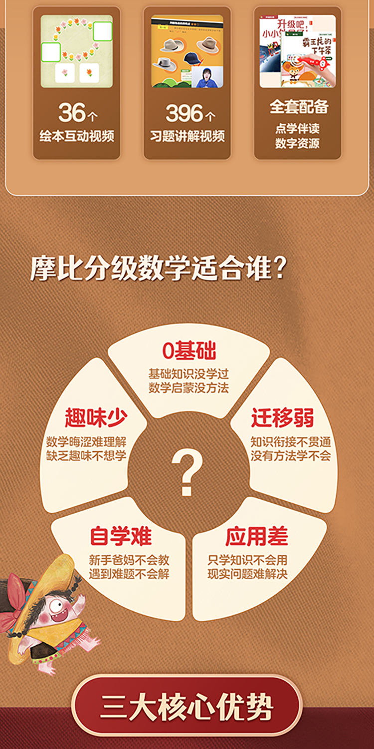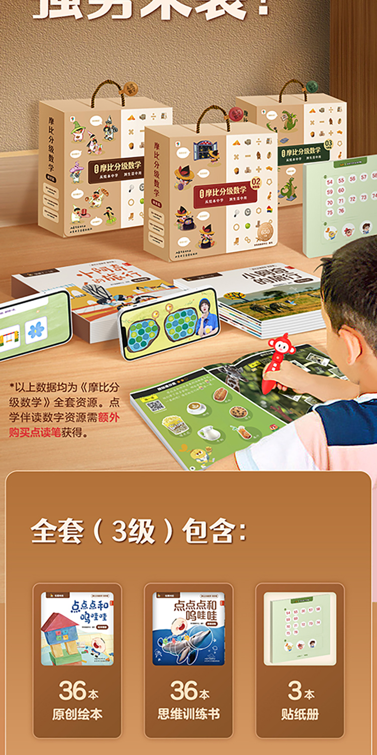 【摩比分级数学】新品首发 3-6岁 全套共36本绘本,36个绘本伴读互动视频,396个习题讲解视频,分级科学,螺旋上升,精准适配中国孩子