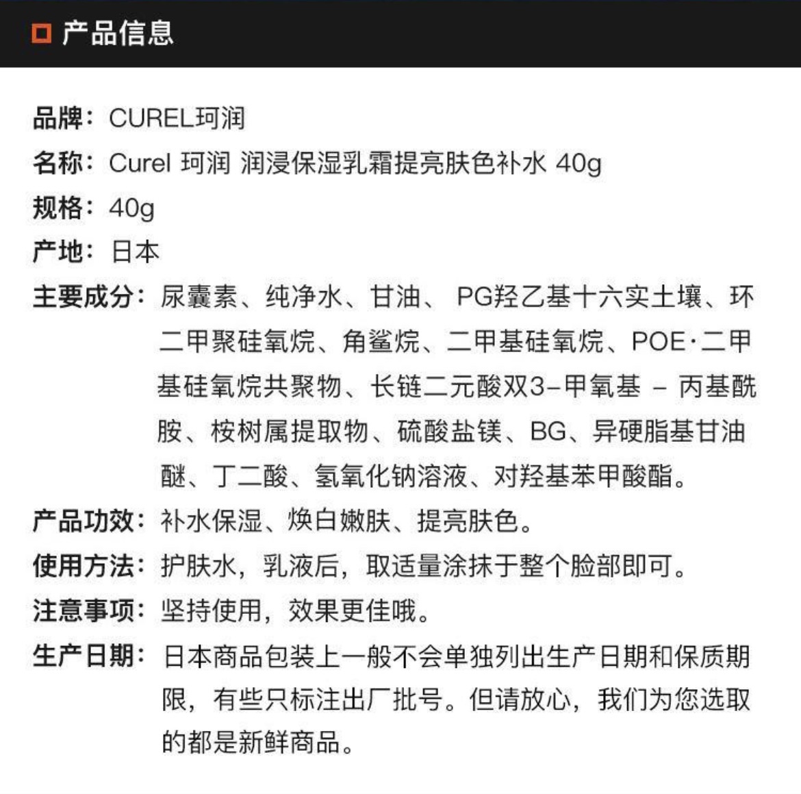 Curel珂润润浸保湿滋养乳霜40g