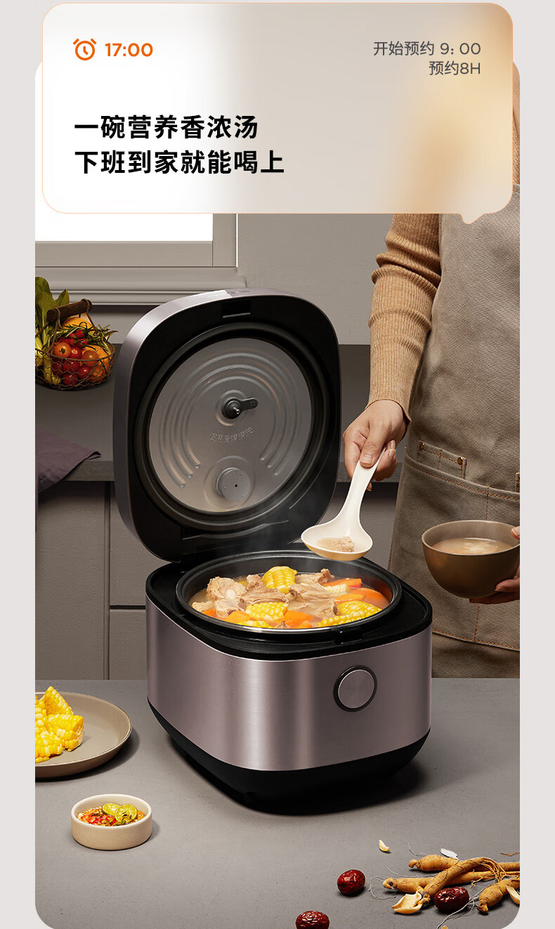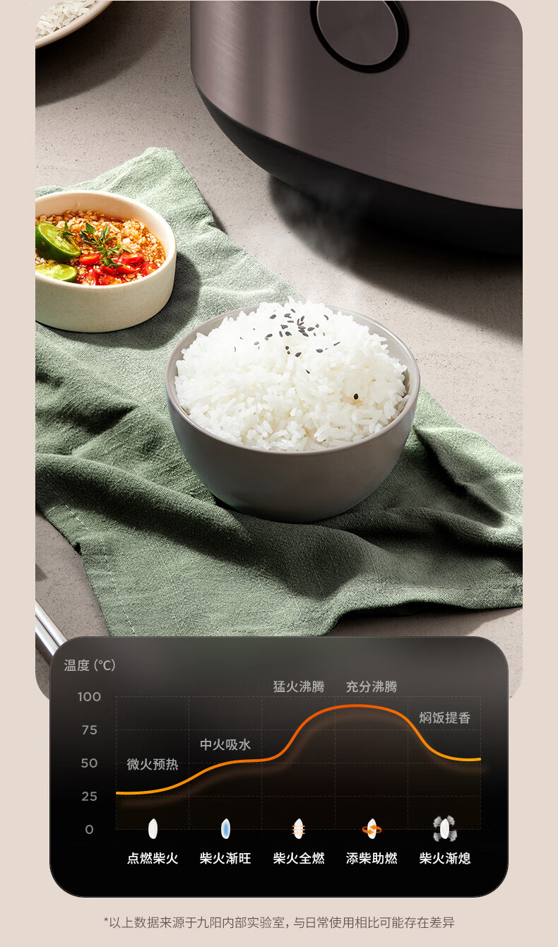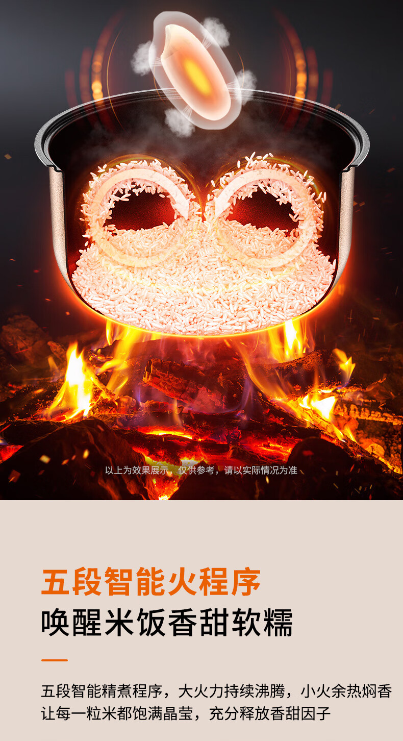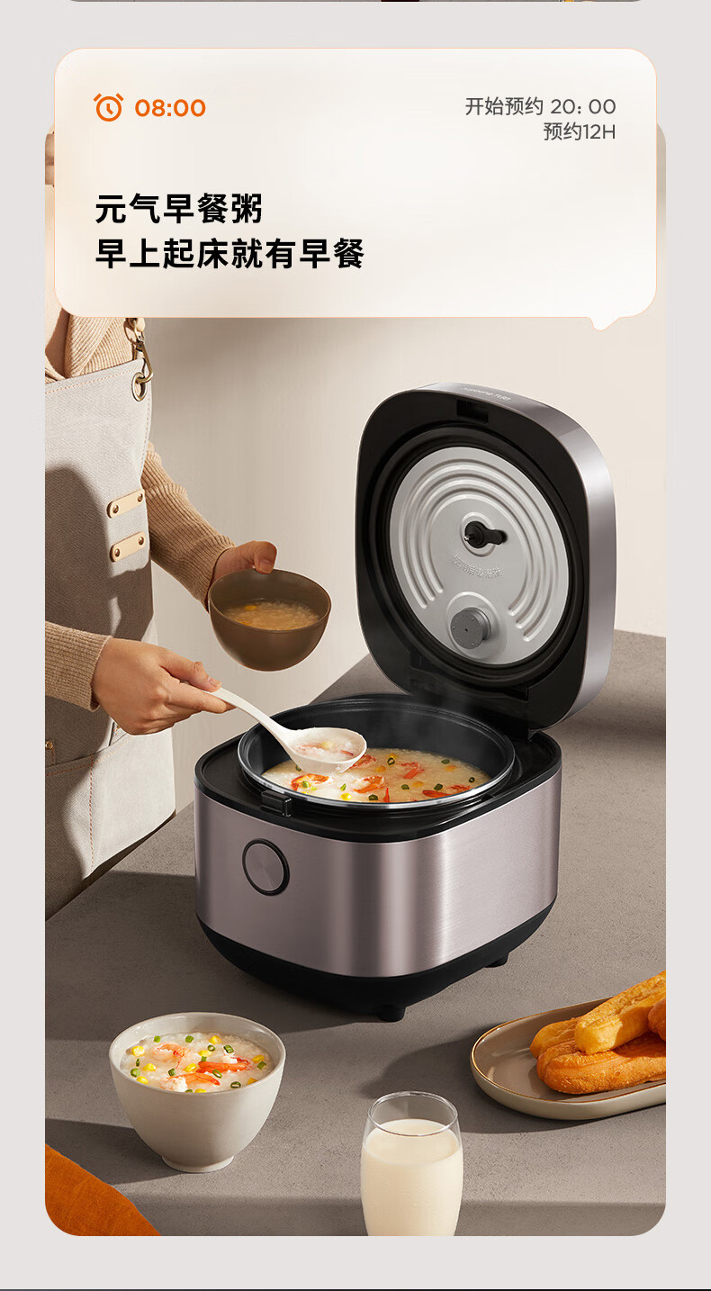 积分免费兑:九阳(Joyoung)5升大容量4~5人电饭煲电饭锅铜匠厚釜内胆大火快煮智能预约多功能5L饭煲F510