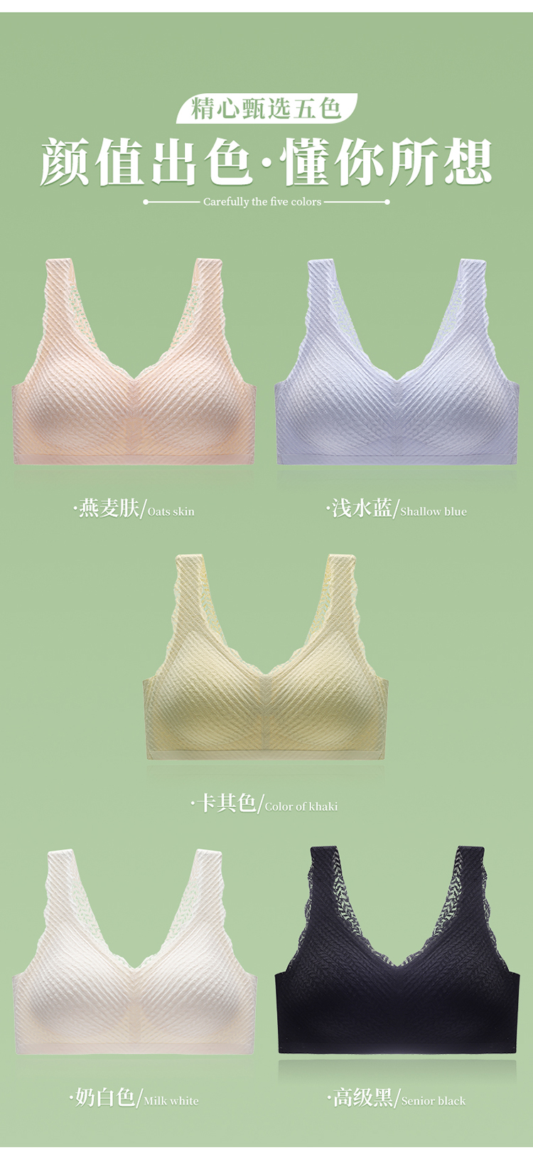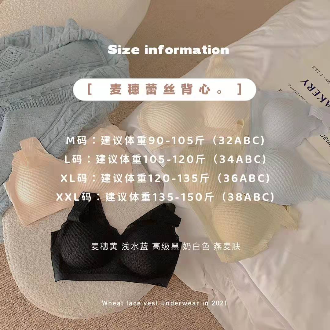 麦穗蕾丝乳胶抑菌无痕无钢圈内衣女背心式文胸美背聚拢上托收副乳H221272458【现货库存 售完即止】贴身衣物不退换